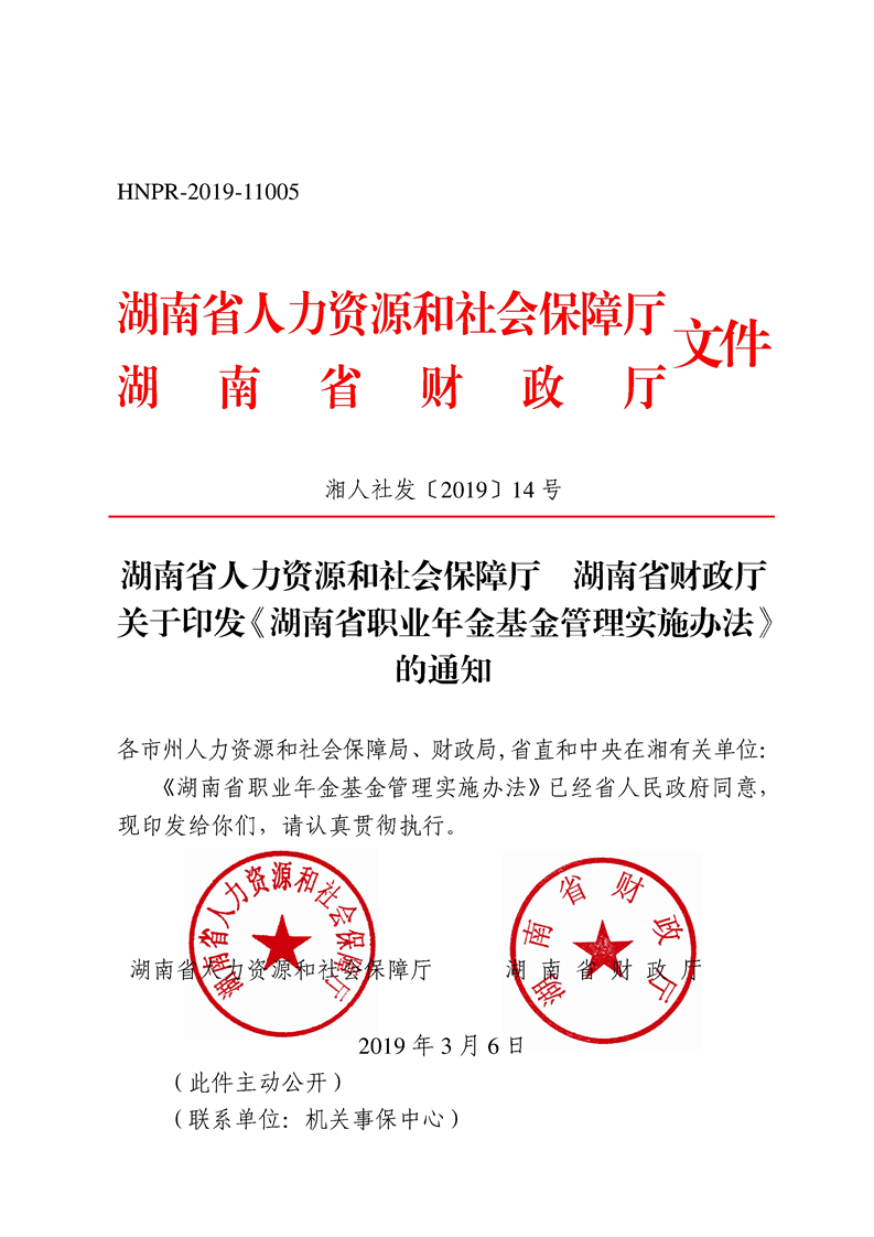 转发湖南省人力资源和社会保障厅 湖南省财政厅关于印发《湖南省职业年金基金管理实施办法》的通知