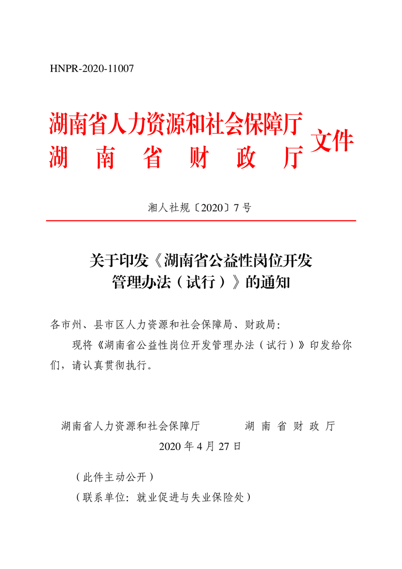 湖南省公益性岗位开发管理办法(试行)