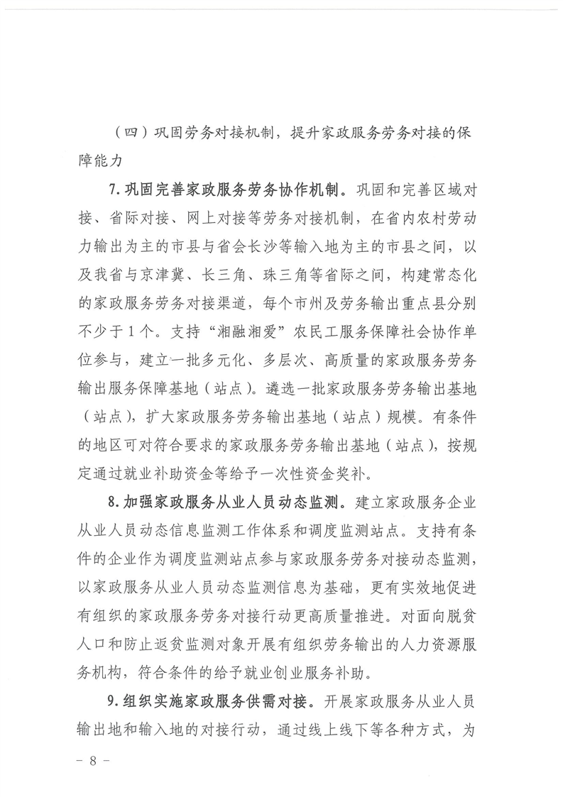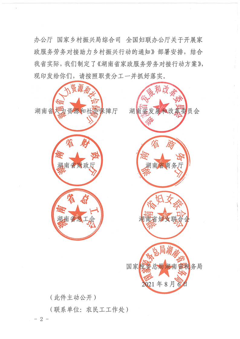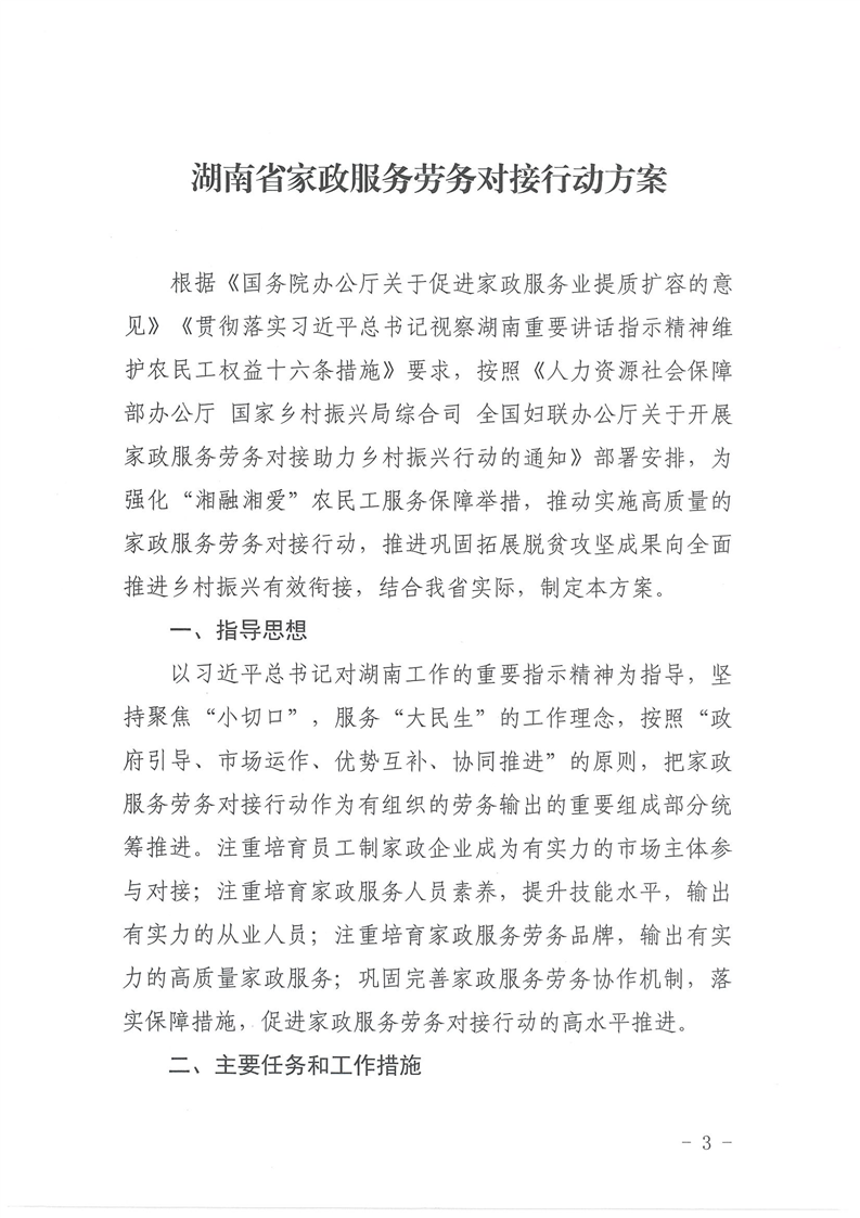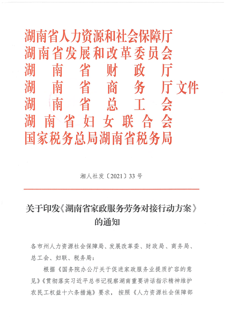 关于转发《湖南省家政服务劳务对接行动的方案》的通知