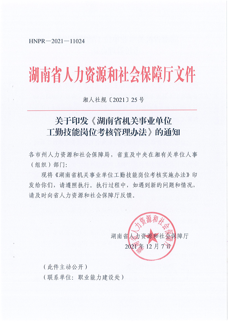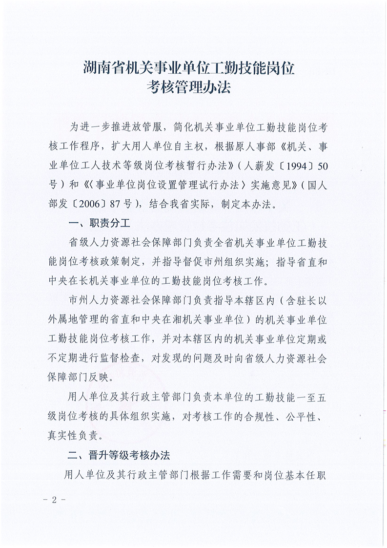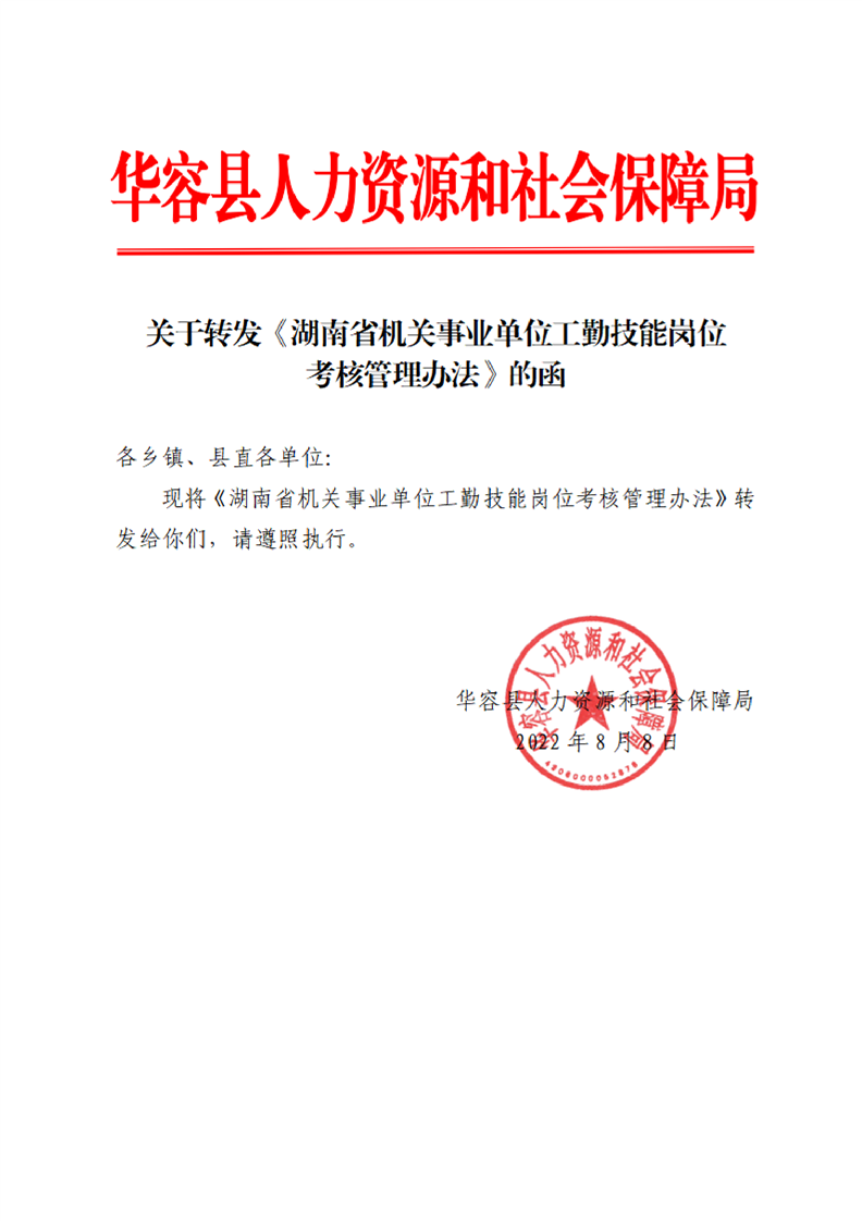 关于转发《湖南省机关事业单位工勤技能岗位考核管理办法》的函