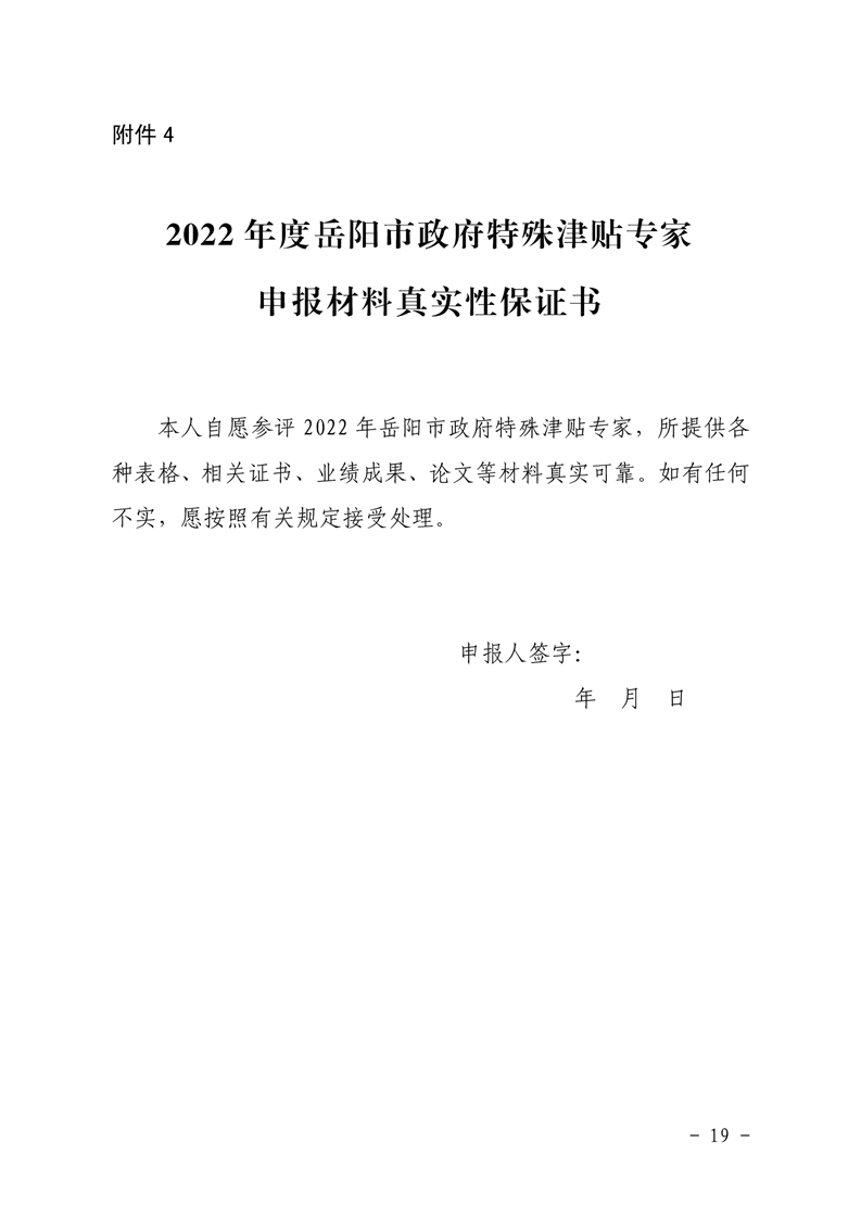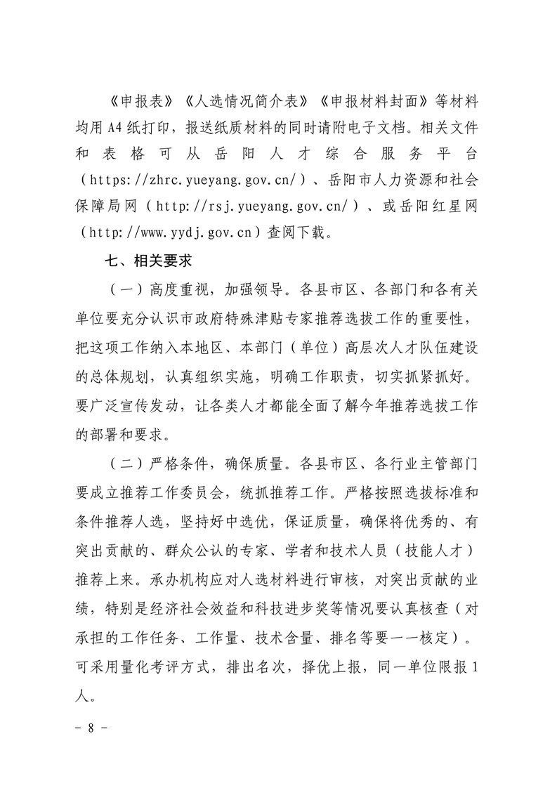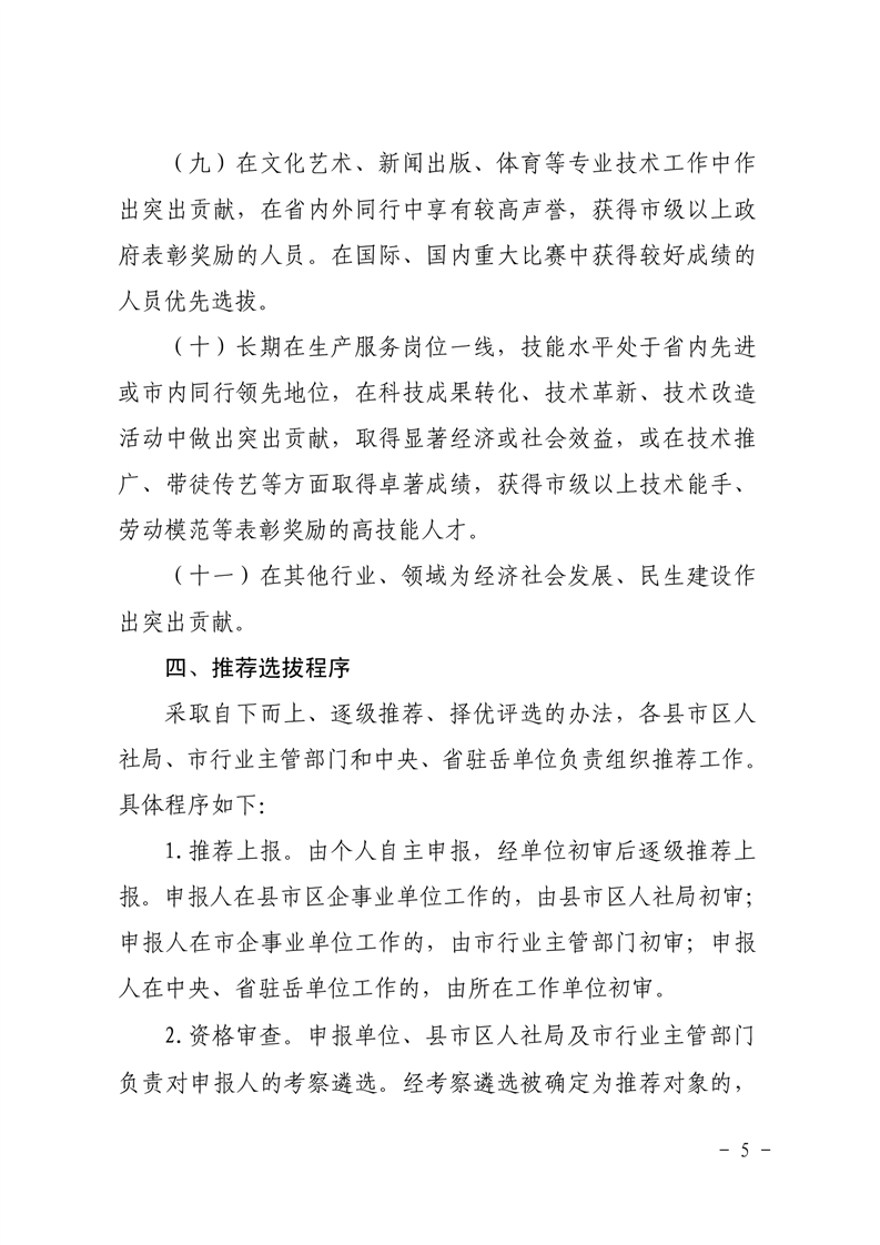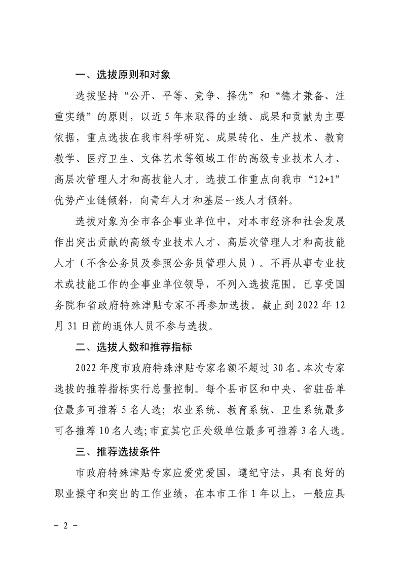 关于转发《中共岳阳市委人才工作领导小组办公室 岳阳市人力资源和社会保障局关于开展2022年享受市政府特殊津贴专家选拔工作的通知》的通知