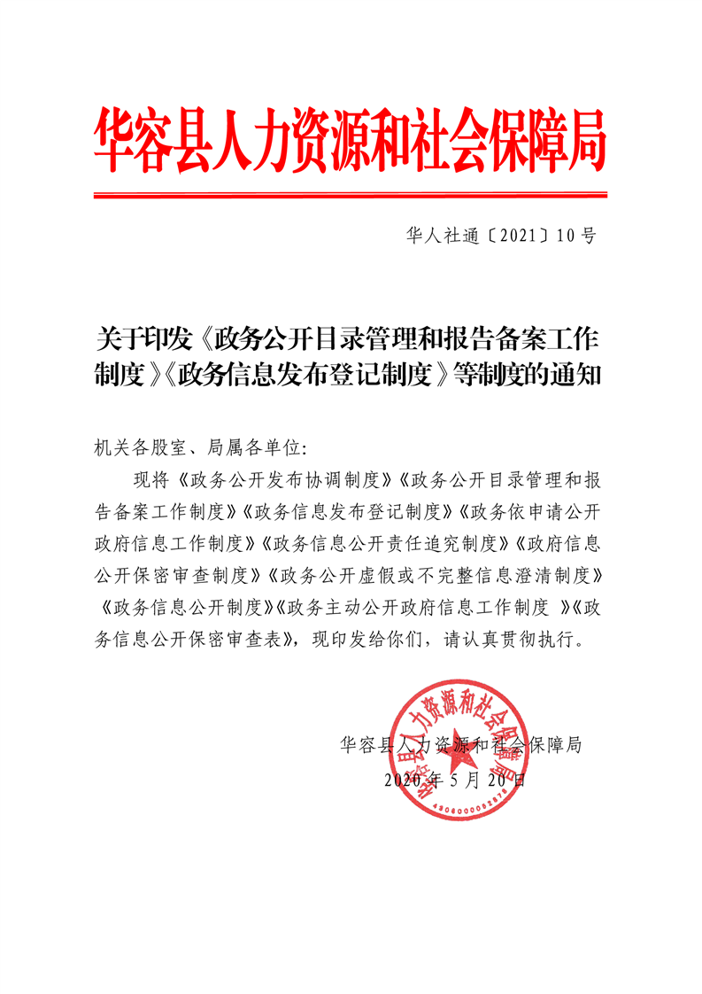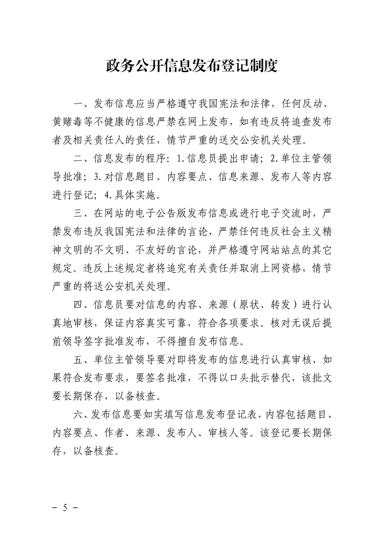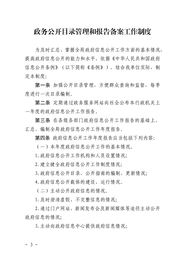 关于印发《政务公开目录管理和报告备案工作制度》《政务信息发布登记制度》等制度的通知