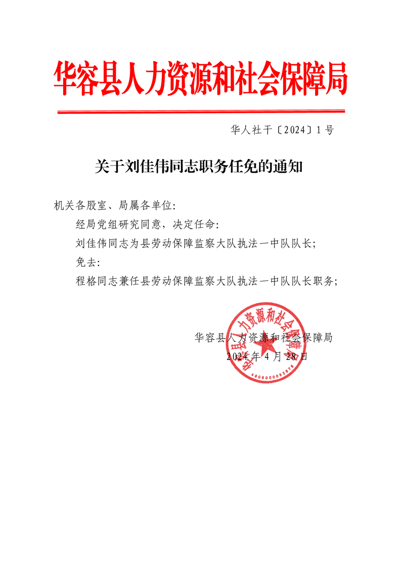 关于刘佳伟等同志职务任免的通知