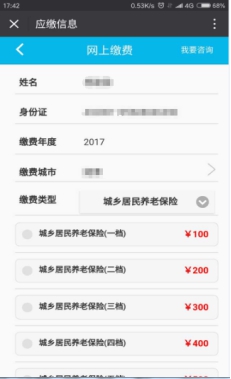 自己缴费:直接确认信息无误后,选择缴费地区与【城乡居民养老保险】,选择缴费档次,点击缴费即可。