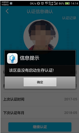 二、如果该地区暂未开通退休待遇资格认证功能,参保人会收到如下提示: