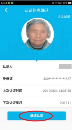 四、确认需认证的人员信息正确后,点击【继续认证】图标,进入温馨提示;