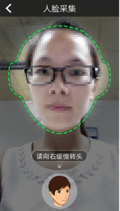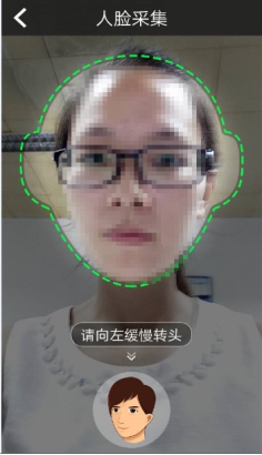 七、系统检测到人脸后,轮廓将变成绿色,开始认证,请按文字和语音提示完成动作;