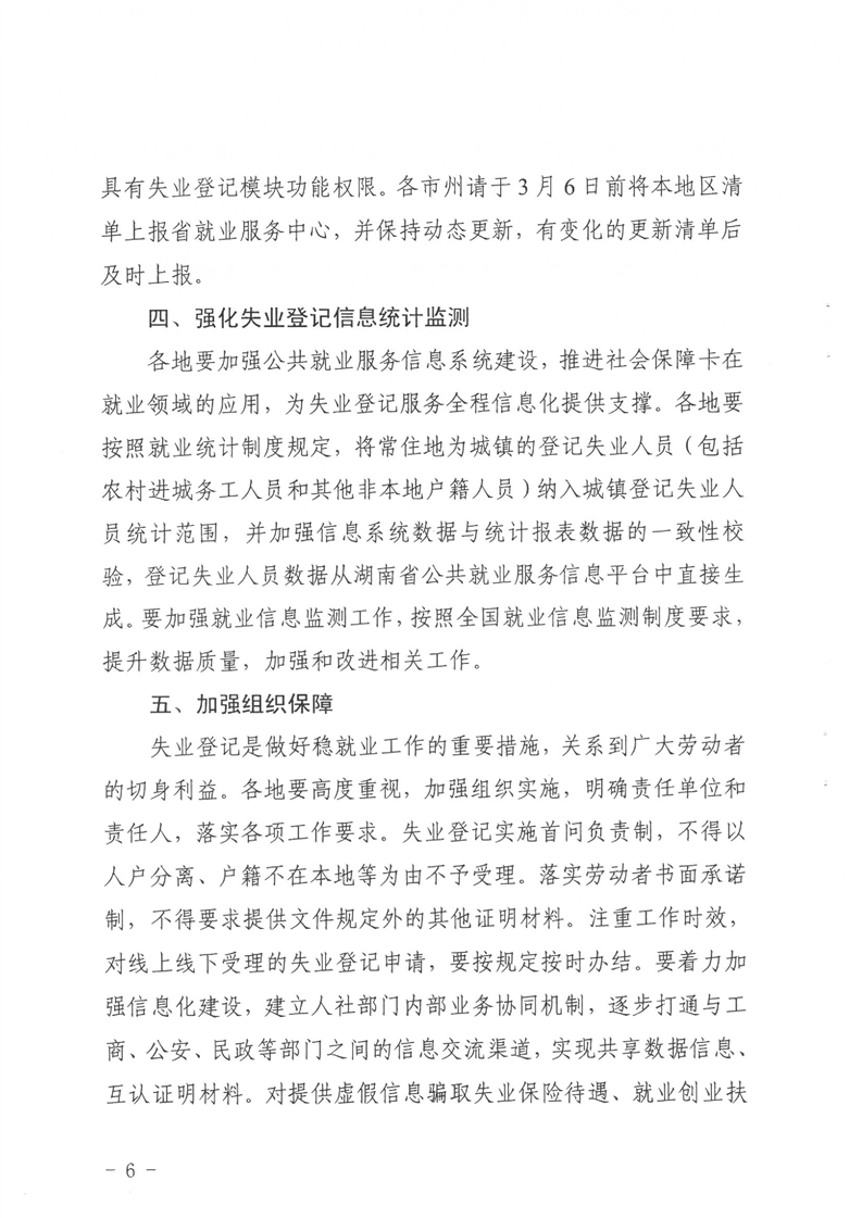 关于转发《湖南省人力资源和社会保障厅关于进一步做好失业登记工作强化失业人员就业服务的通知》