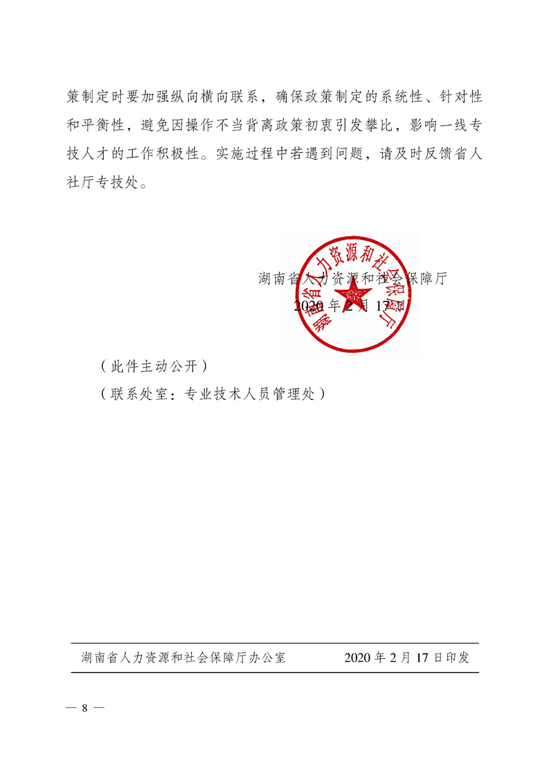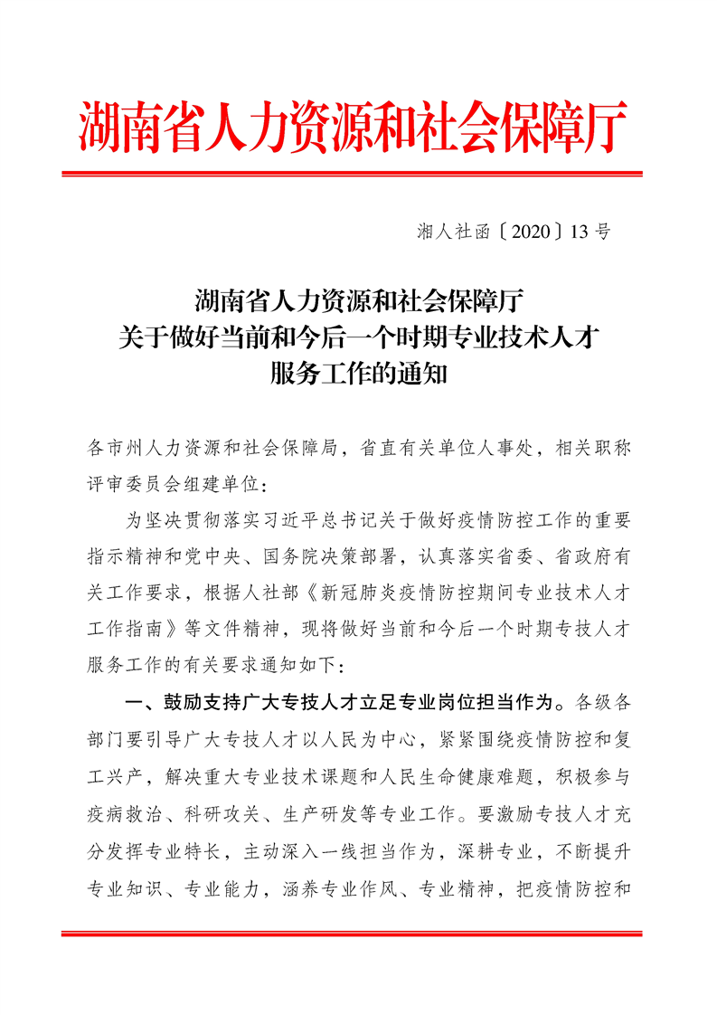 关于转发《湖南省人力资源和社会保障厅关于做好当前和今后一个时期专业技术人才服务工作的通知》