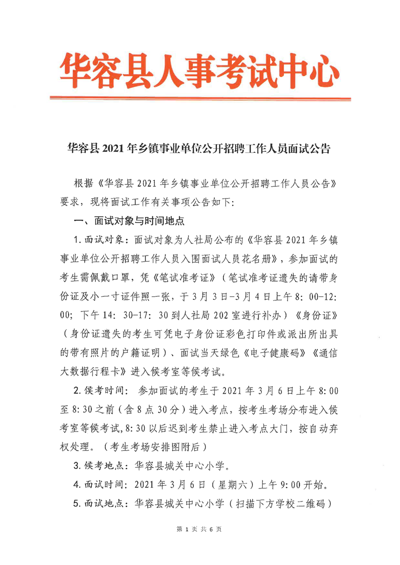 华容县2021年乡镇事业单位公开招聘工作人员面试公告
