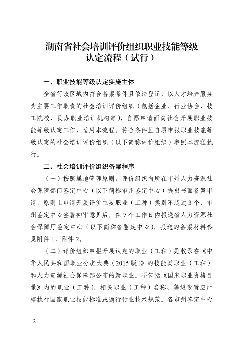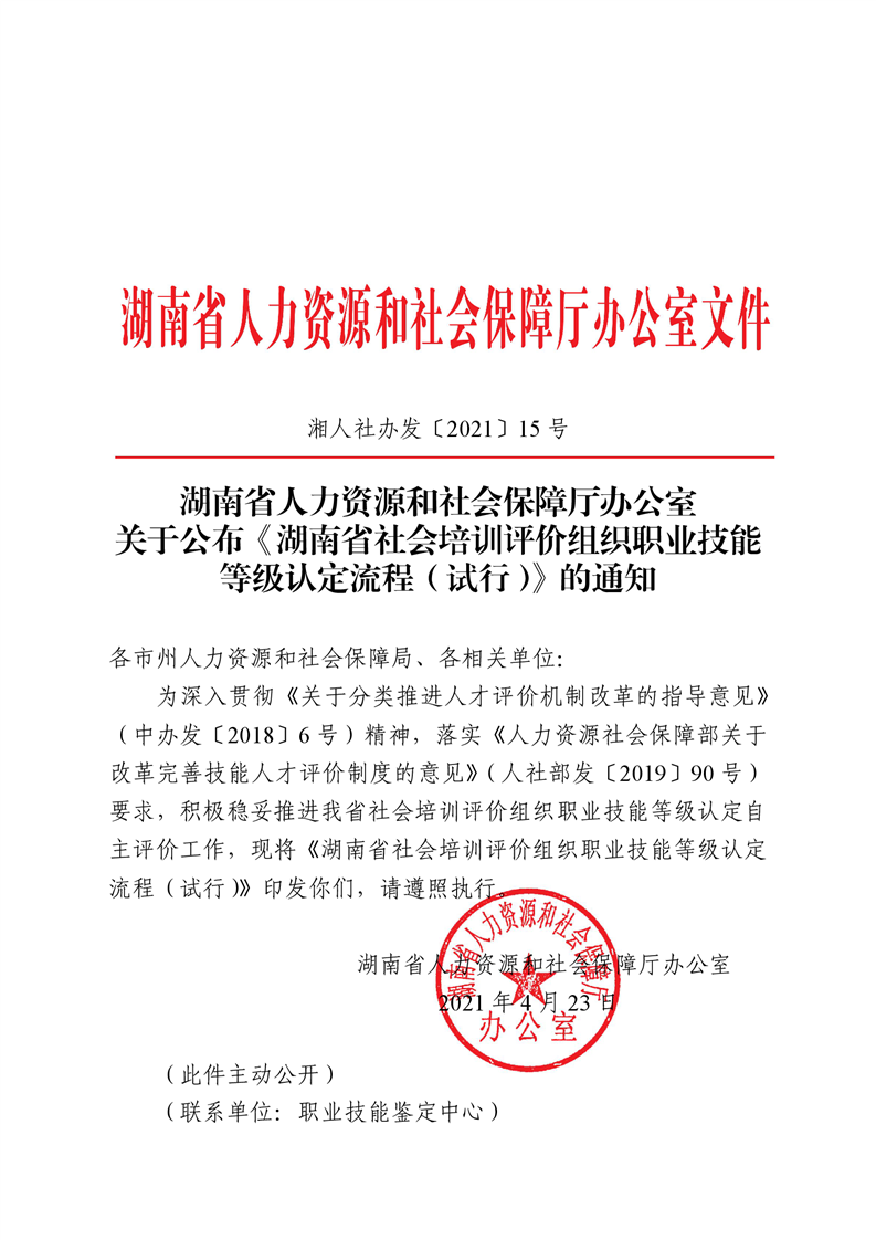 转发关于公布《湖南省社会培训评价组织职业技能等级认定流程(试行)》的通知