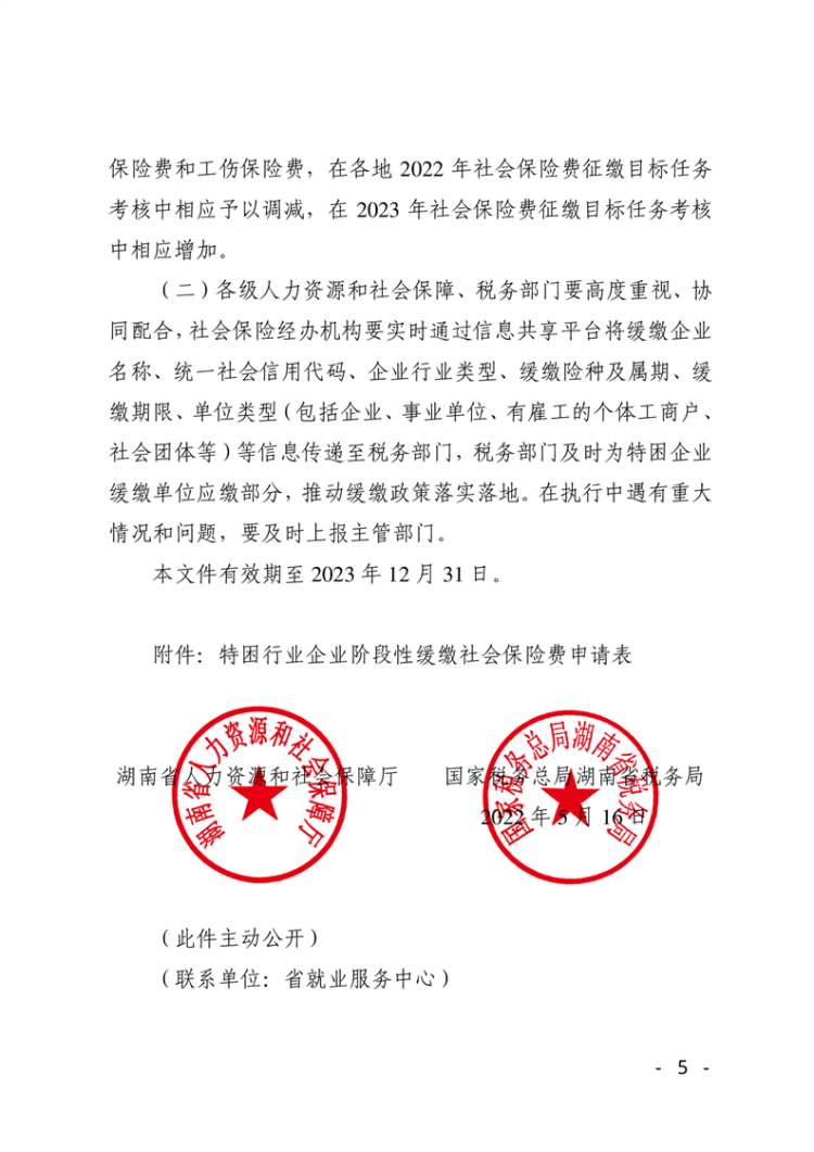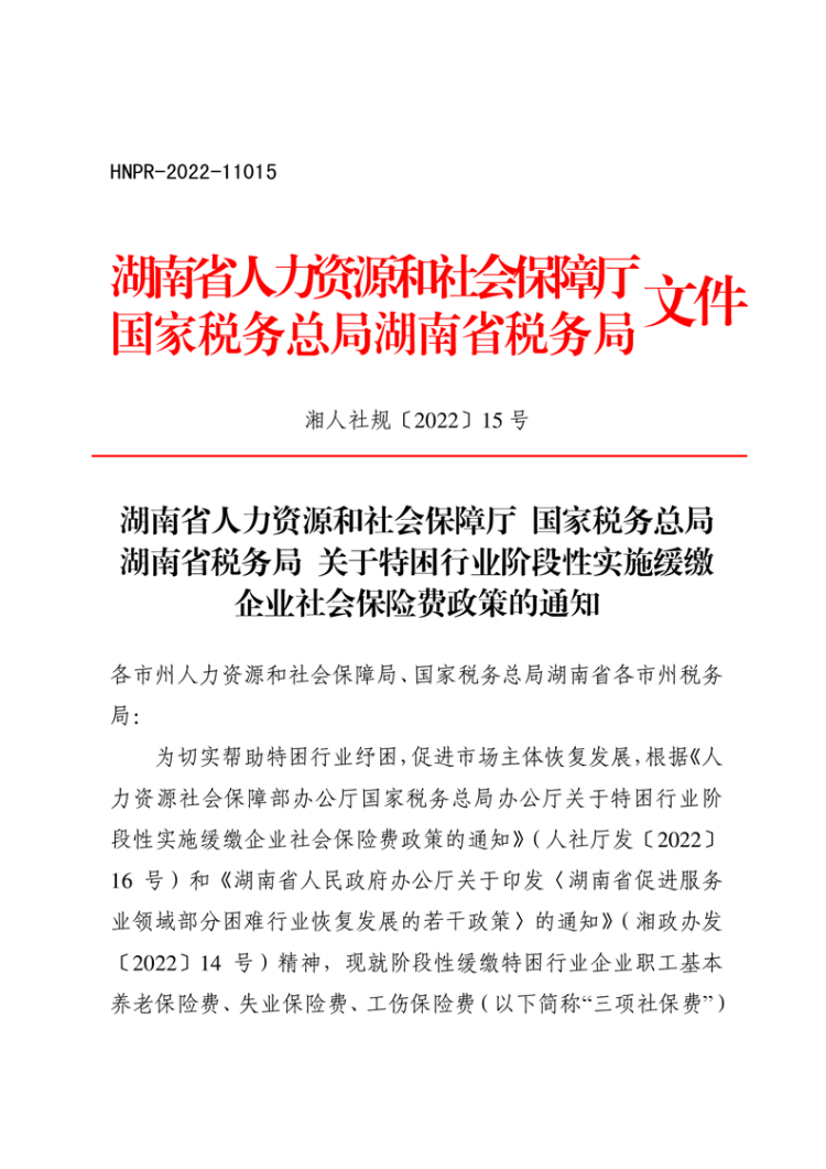 湖南省人力资源和社会保障厅 国家税务总局 湖南省税务局 关于特困行业阶段性实施缓缴企业社会保险费政策的通知