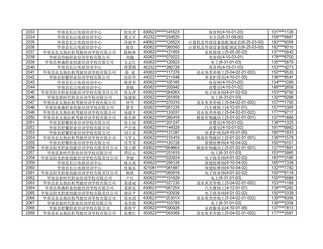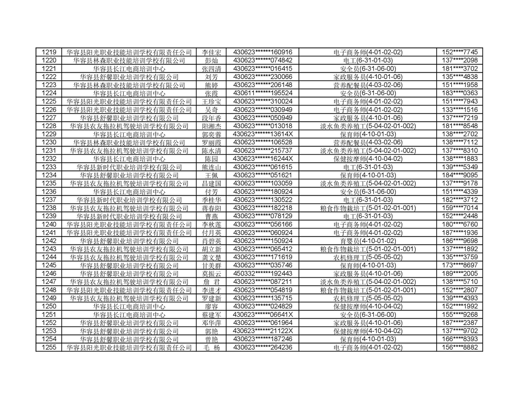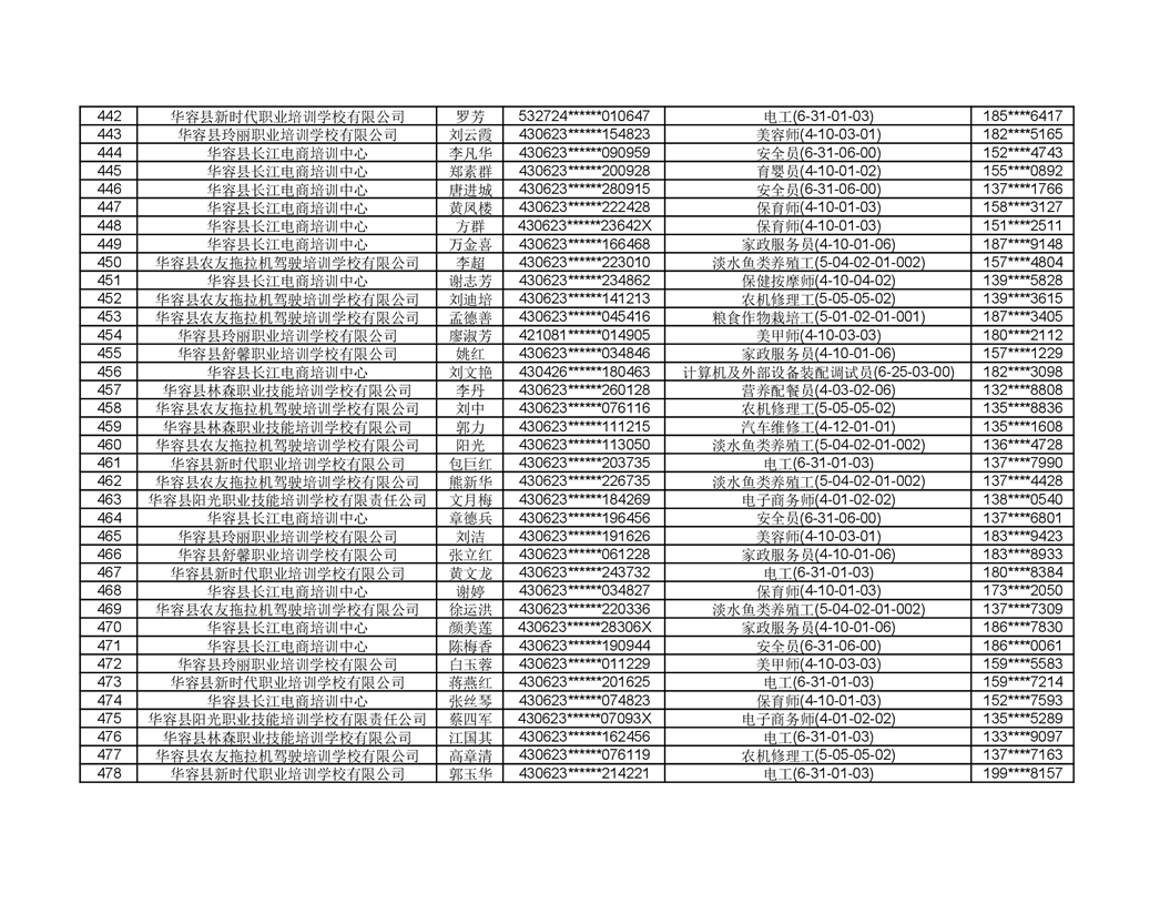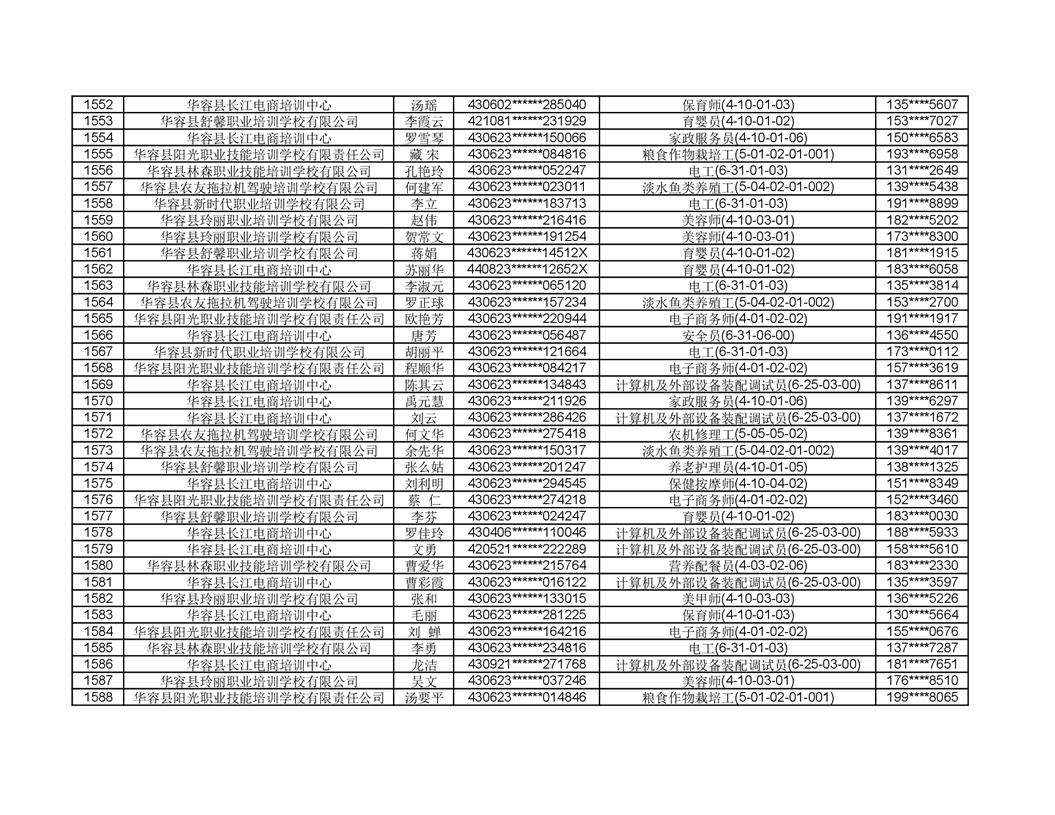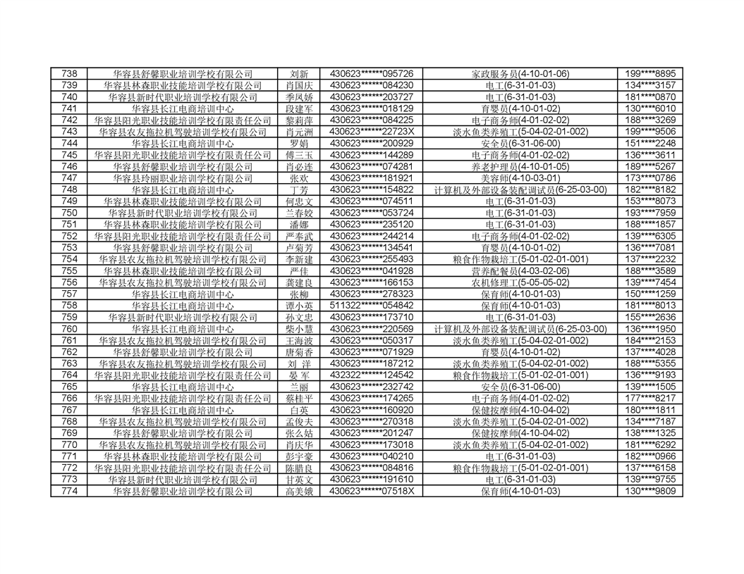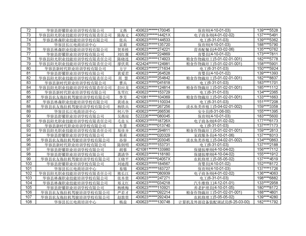 关于华容县2022年职业培训人员名单的公示