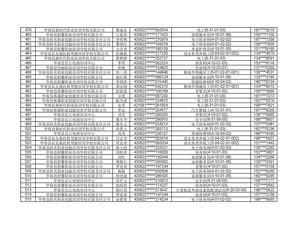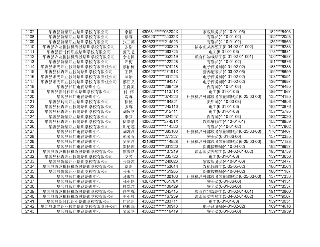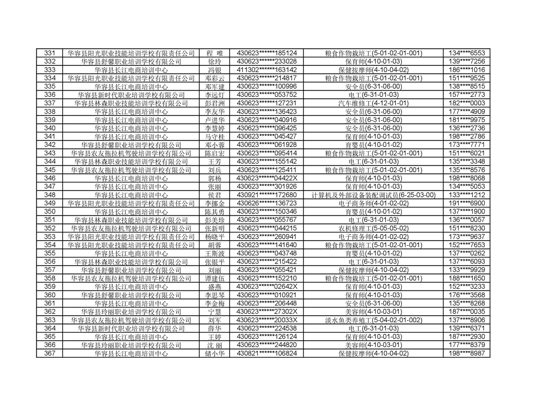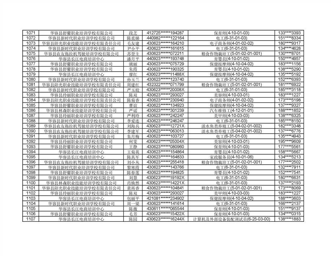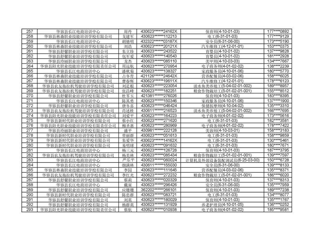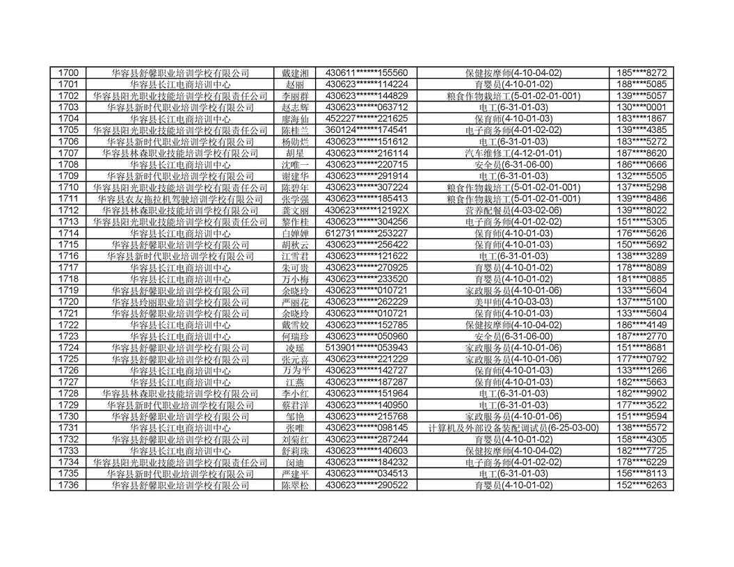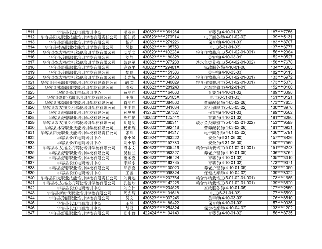 关于华容县2022年职业培训人员名单的公示
