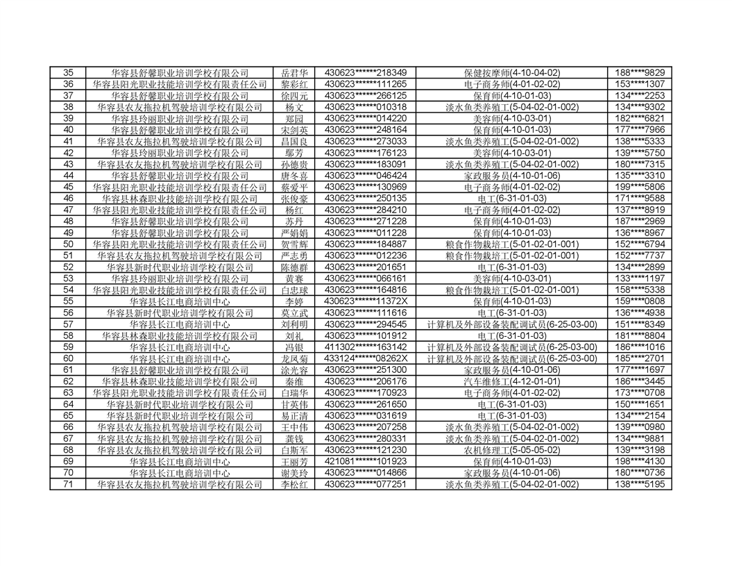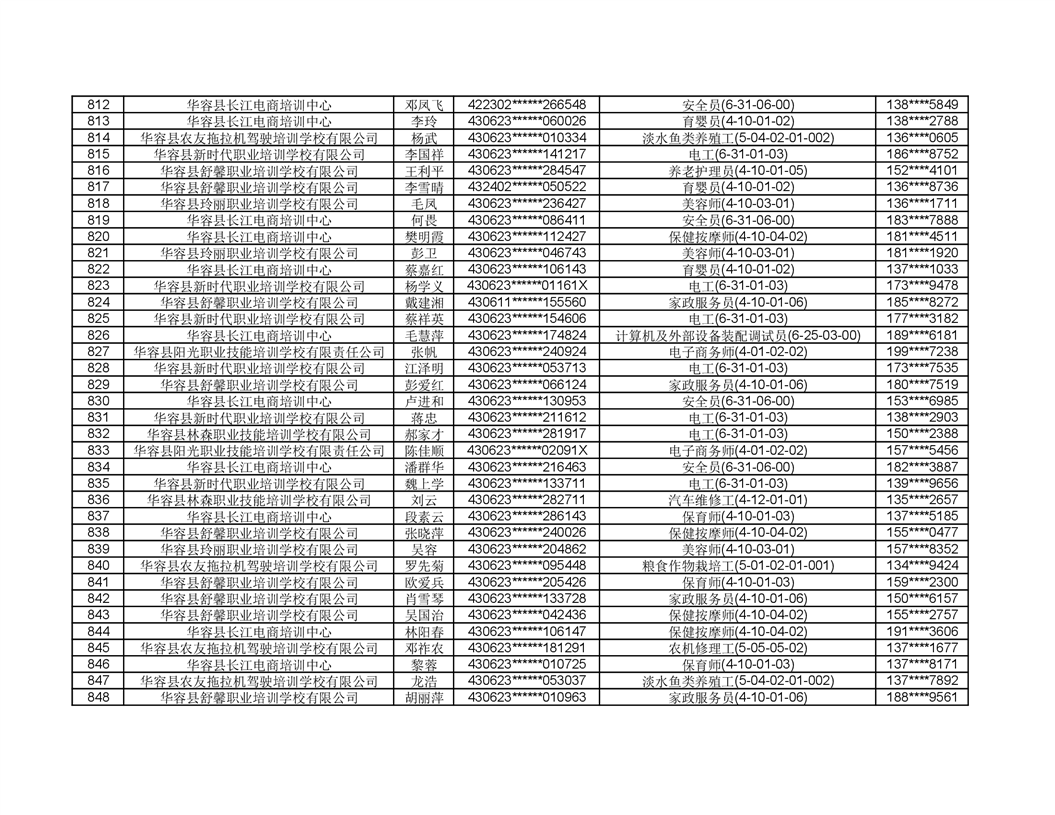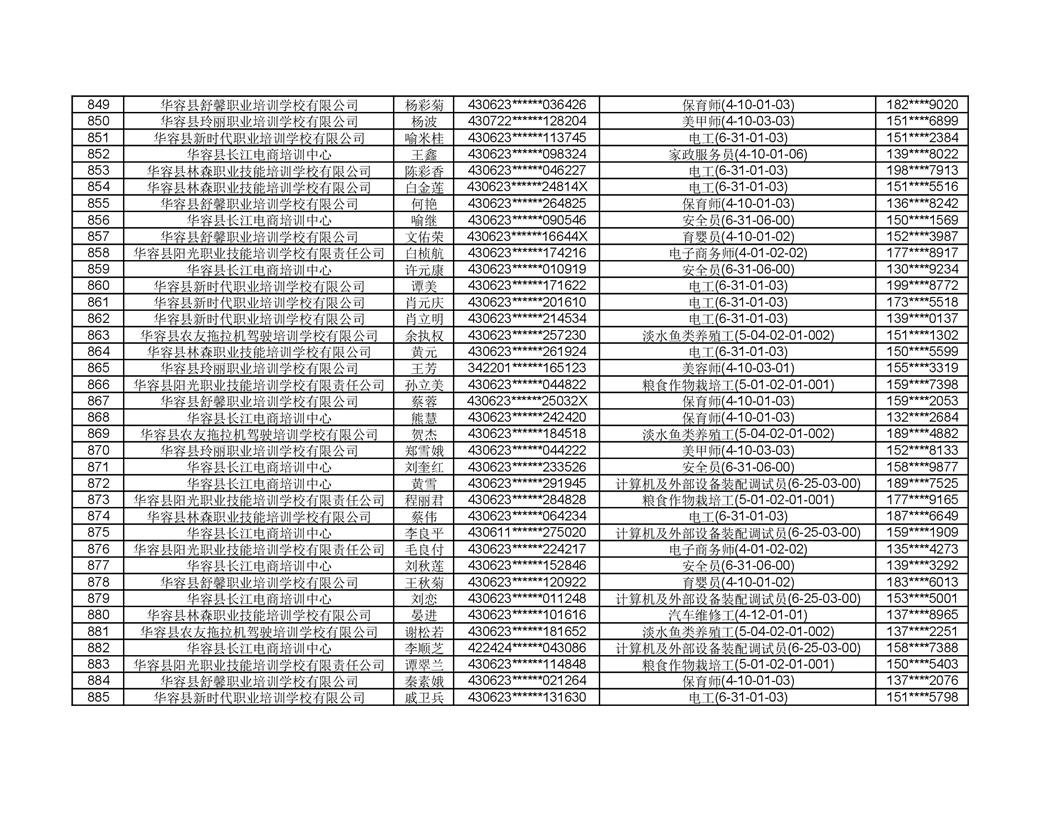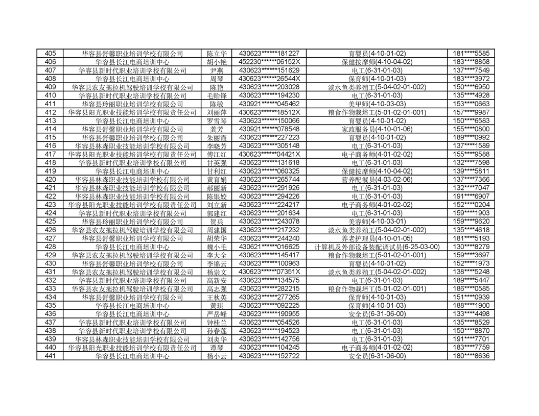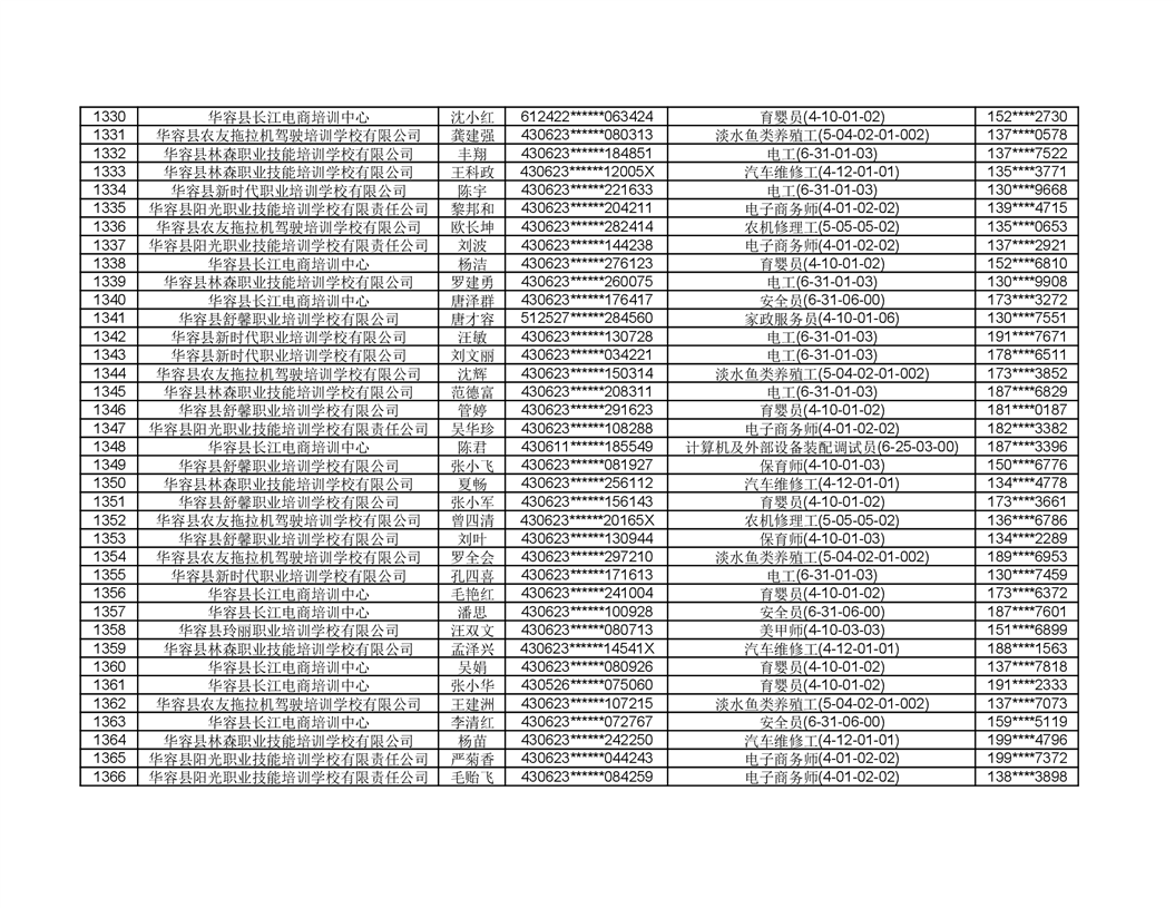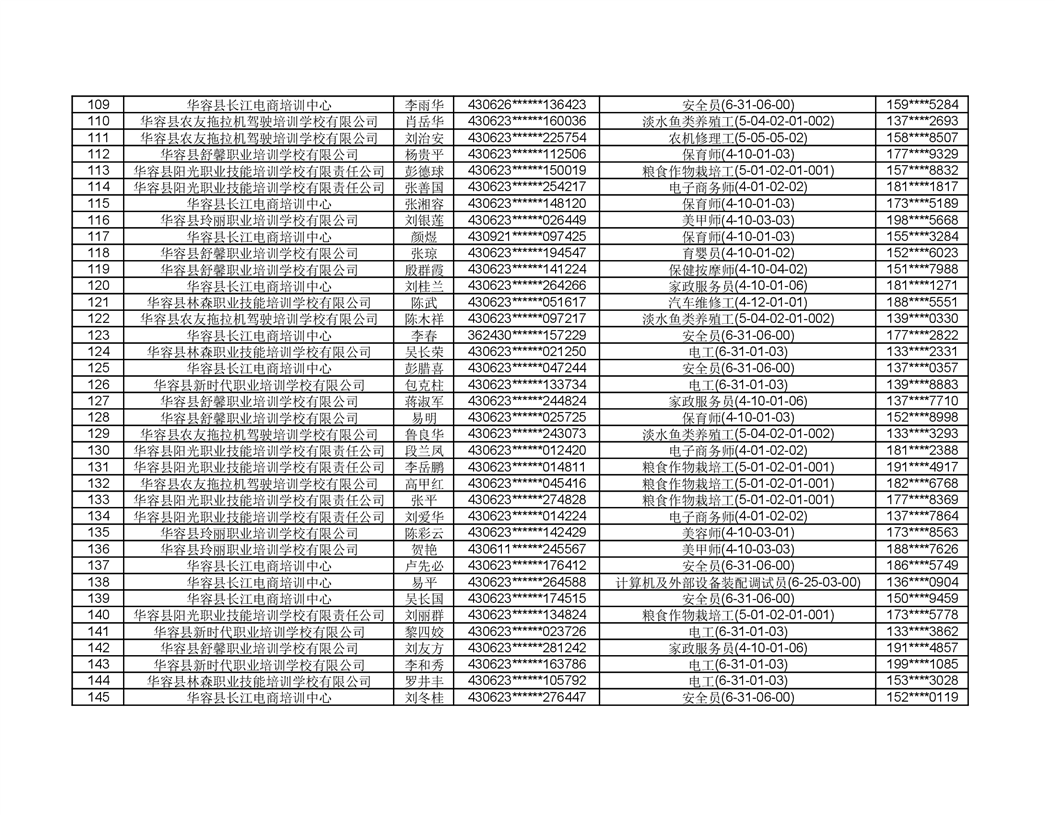 关于华容县2022年职业培训人员名单的公示