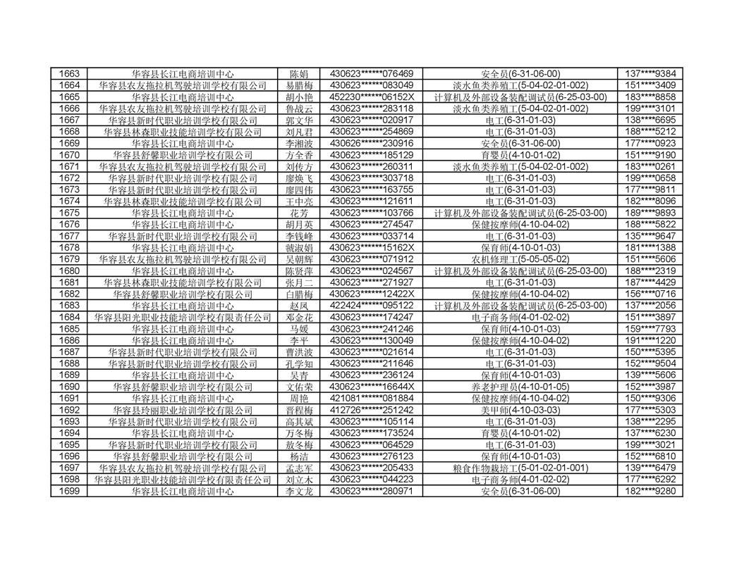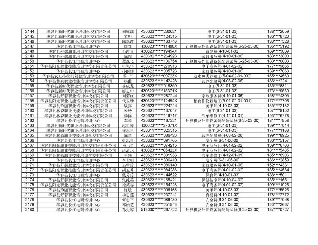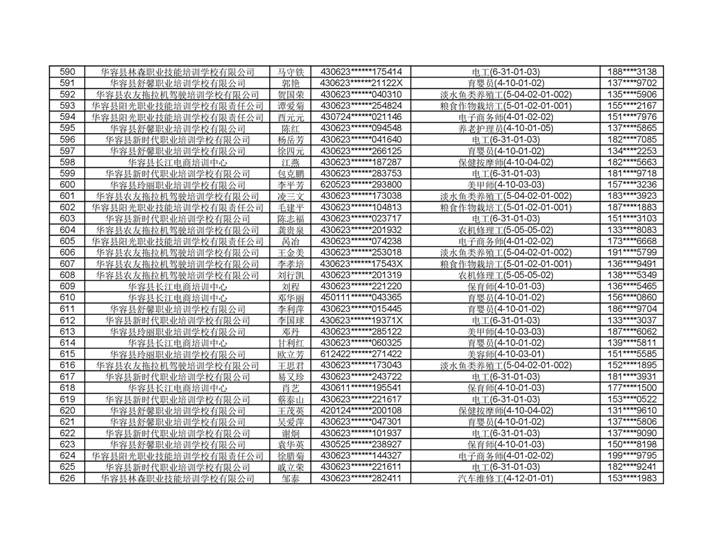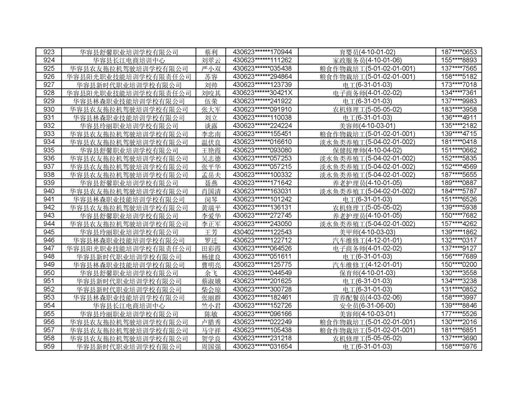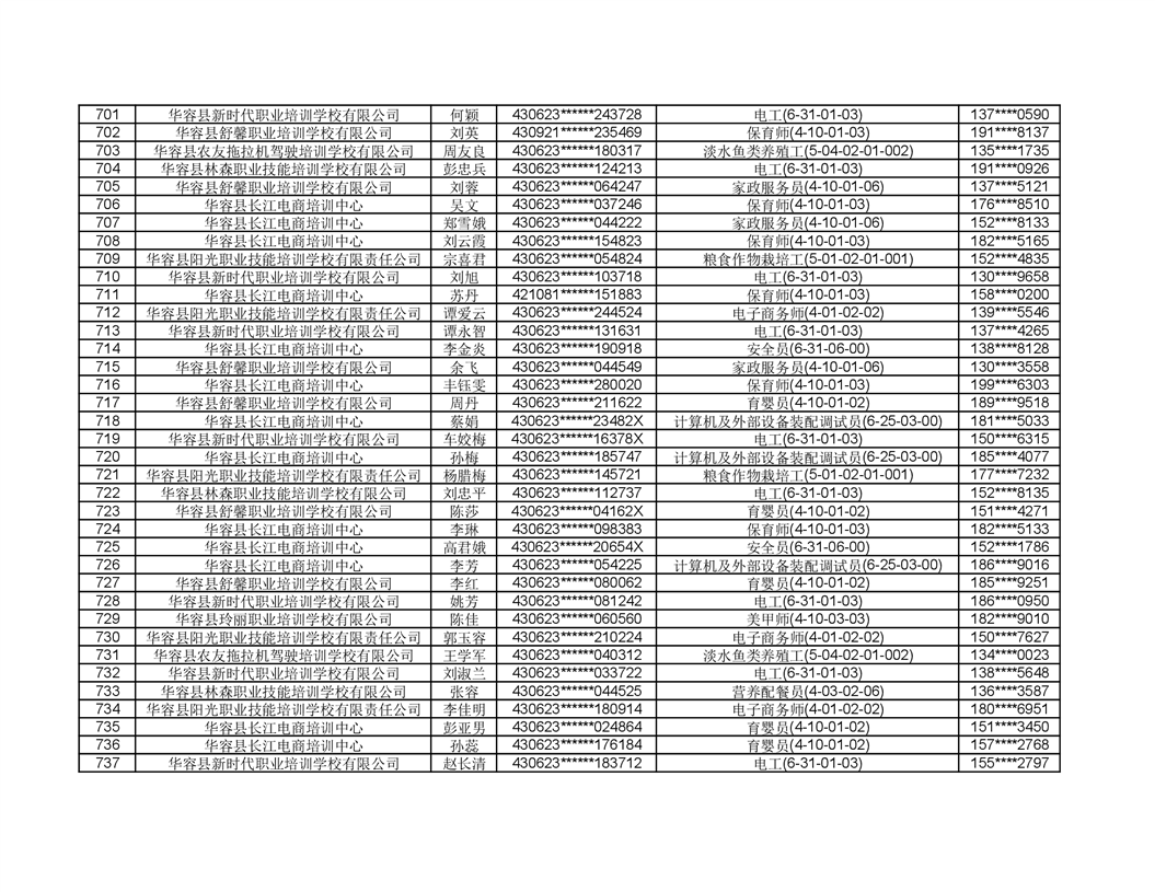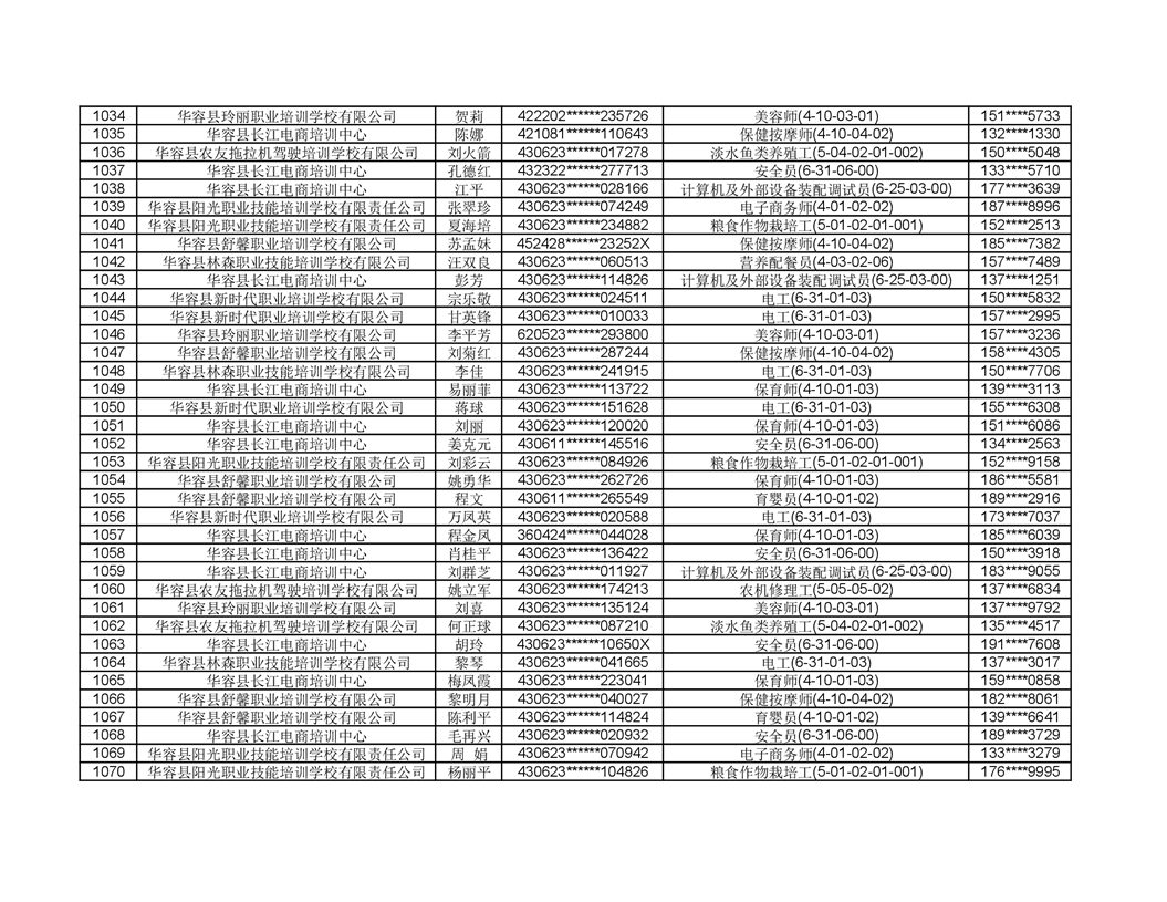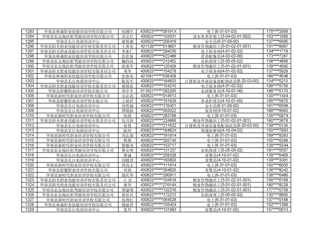 关于华容县2022年职业培训人员名单的公示