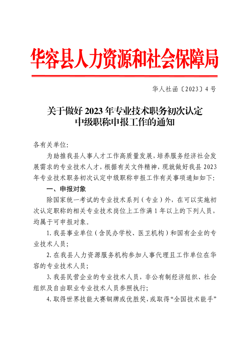 关于做好2023年专业技术职务初次认定中级职称申报工作的通知
