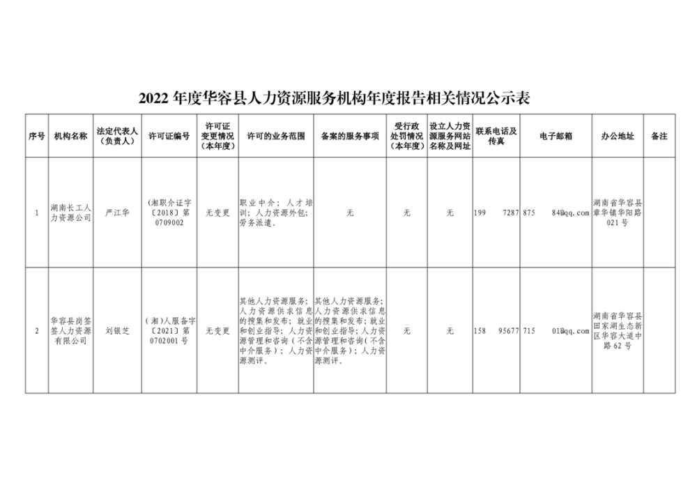 2022年度华容县人力资源服务机构年度报告相关情况公示表