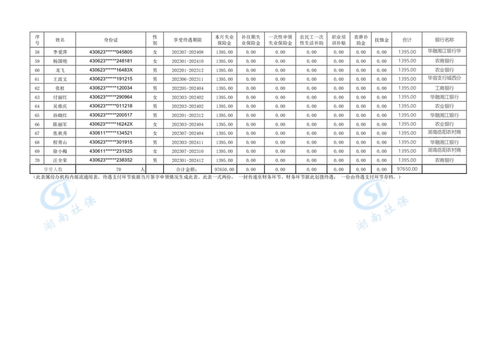 2023年7月失业保险金发放公示表