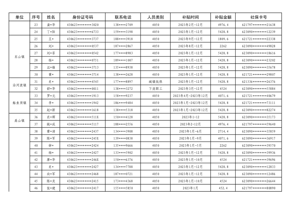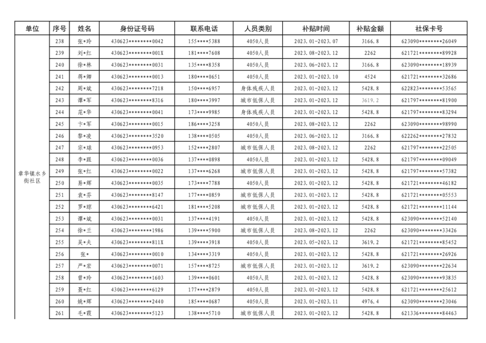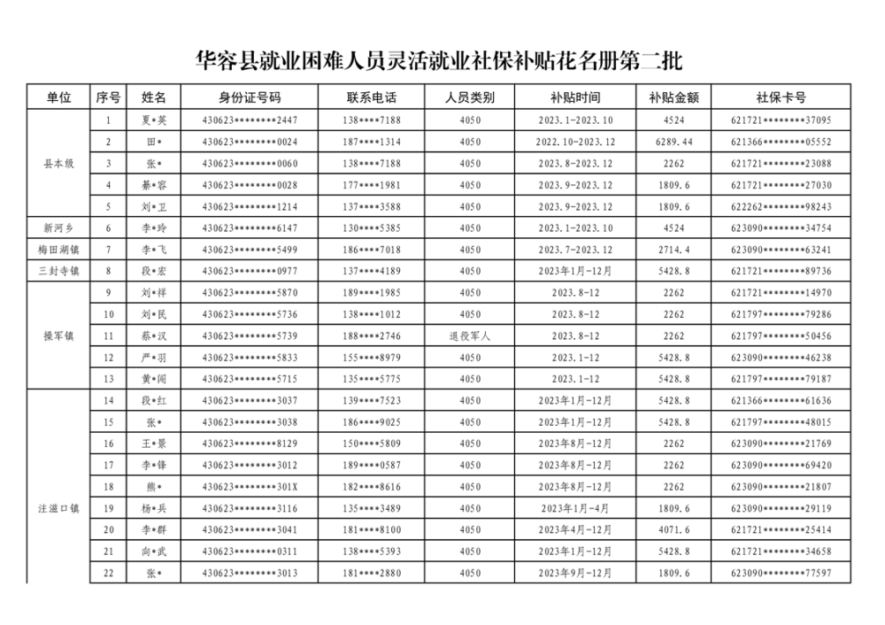 关于华容县享受2023年度灵活就业社保补贴的公示(第二批)