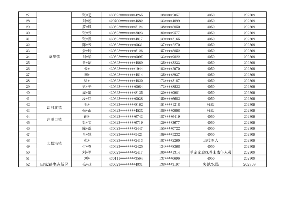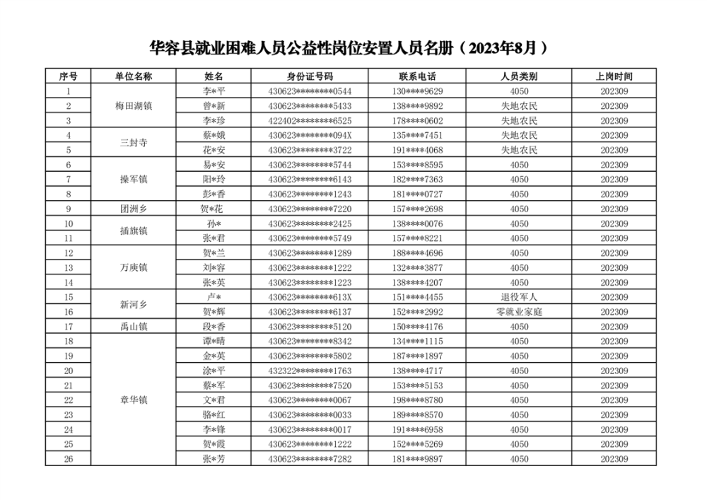 关于华容县2023年9-12月就业困难人员公益性岗位补贴的公示