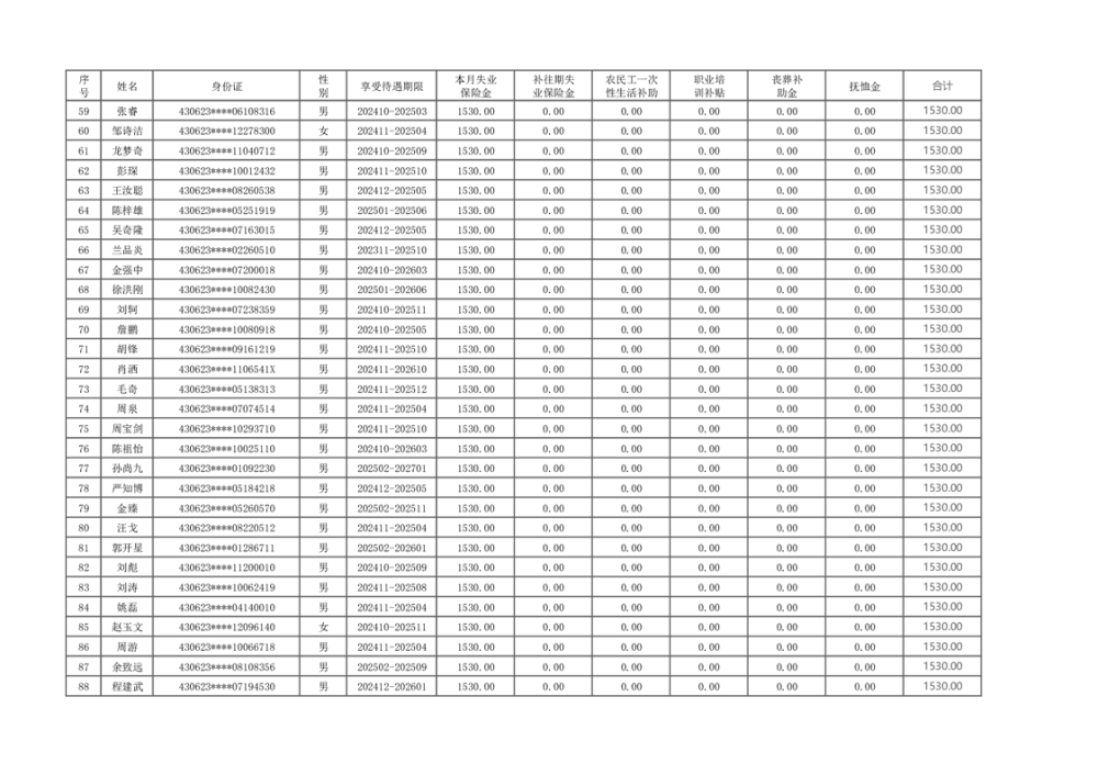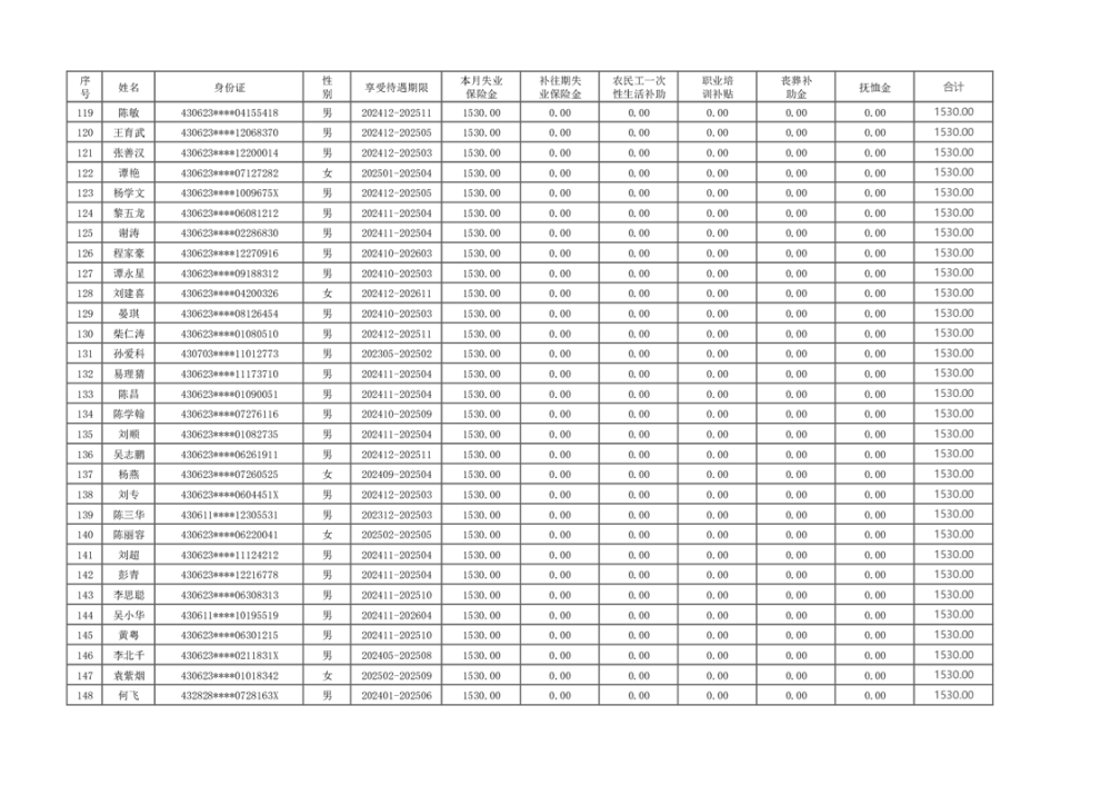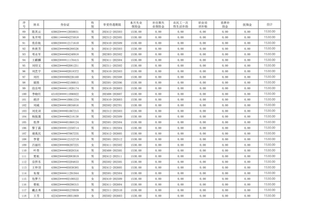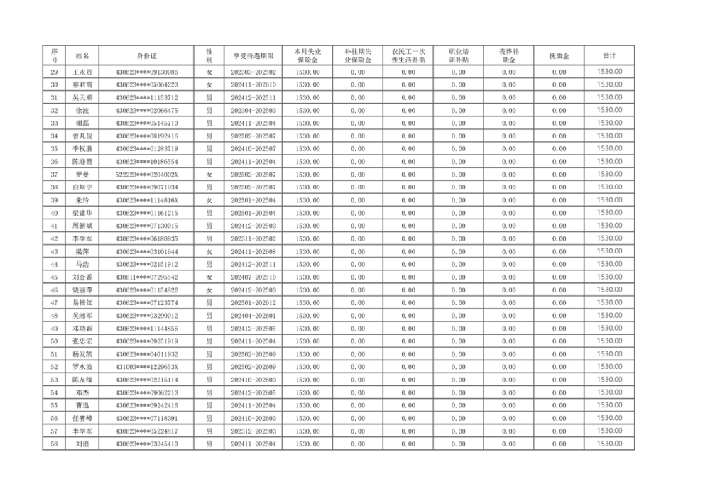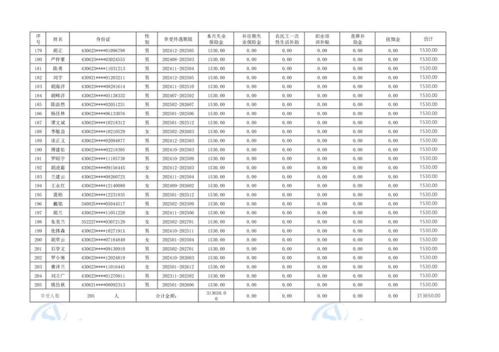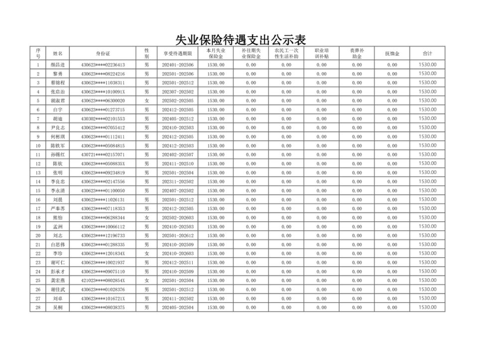 2025年2月失业保险待遇支出公示表