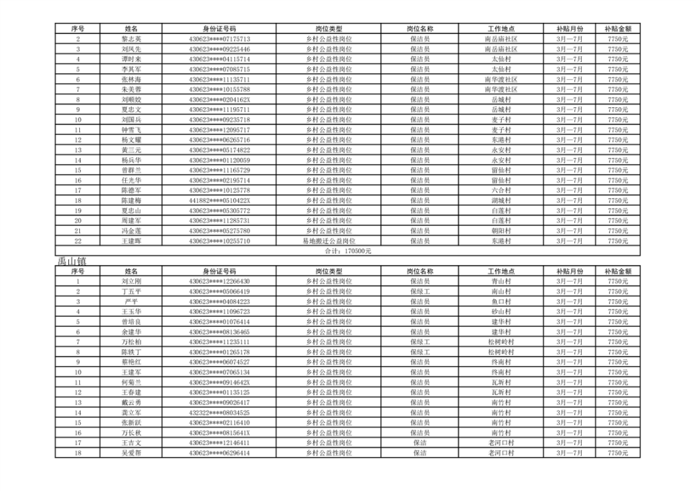 关于华容县2024年第三批乡村公益性岗位补贴发放的公示