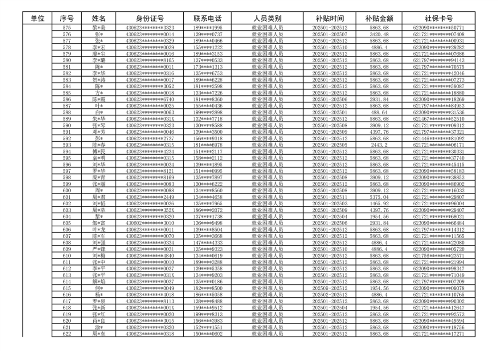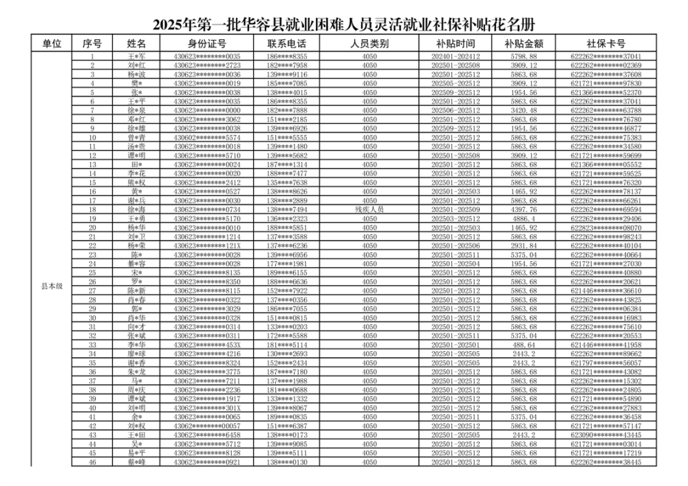 华容县享受2025年度第一批灵活就业社保补贴人员的公示