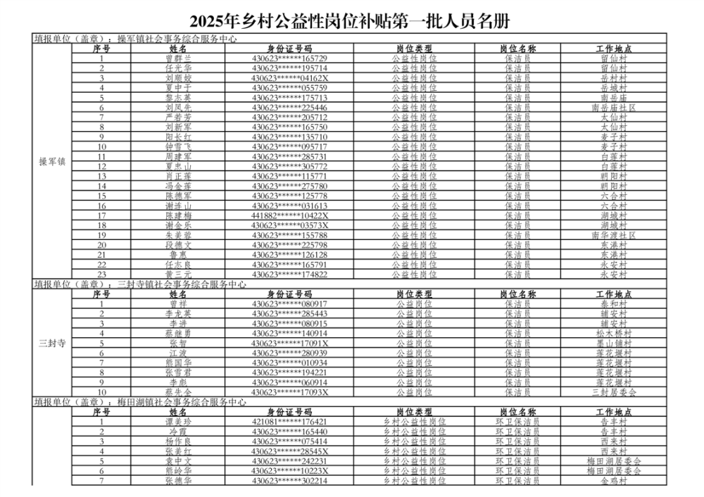 关于拨付2025年乡村公益性岗位第一批补贴的公示