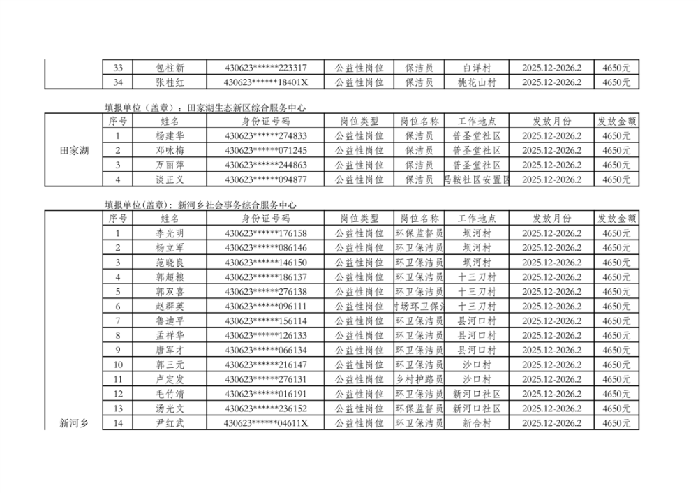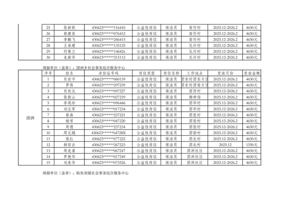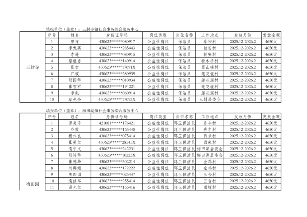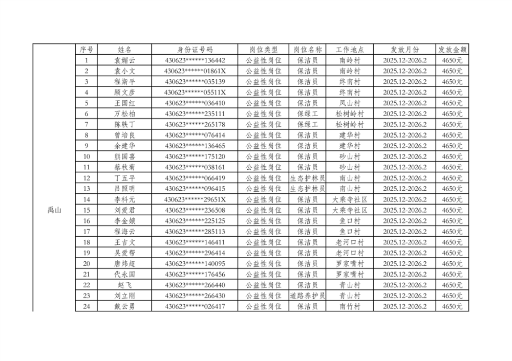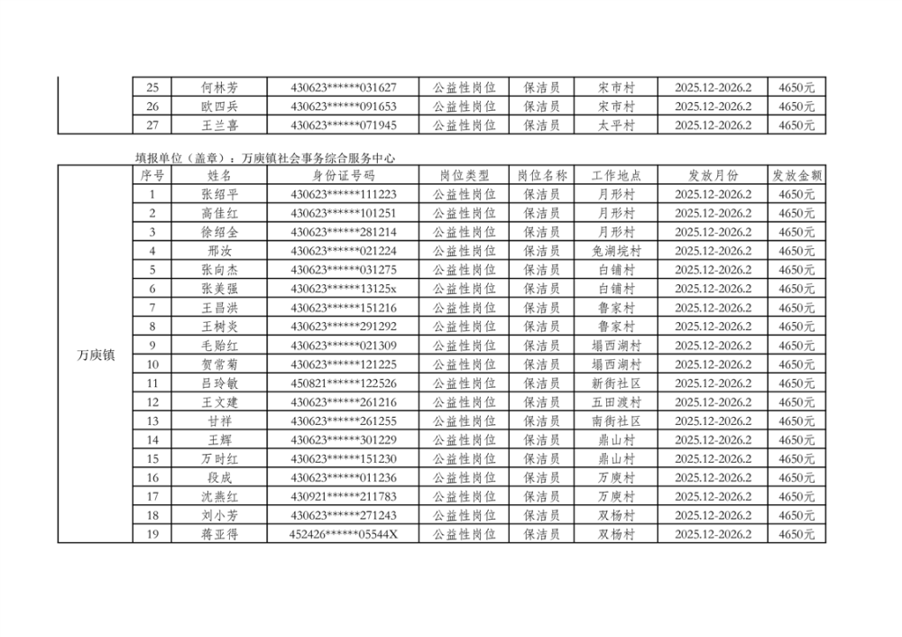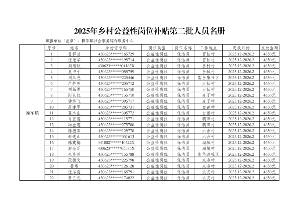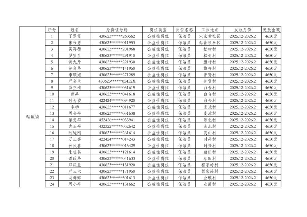 关于拨付2025年乡村公益性岗位第二批补贴的公示