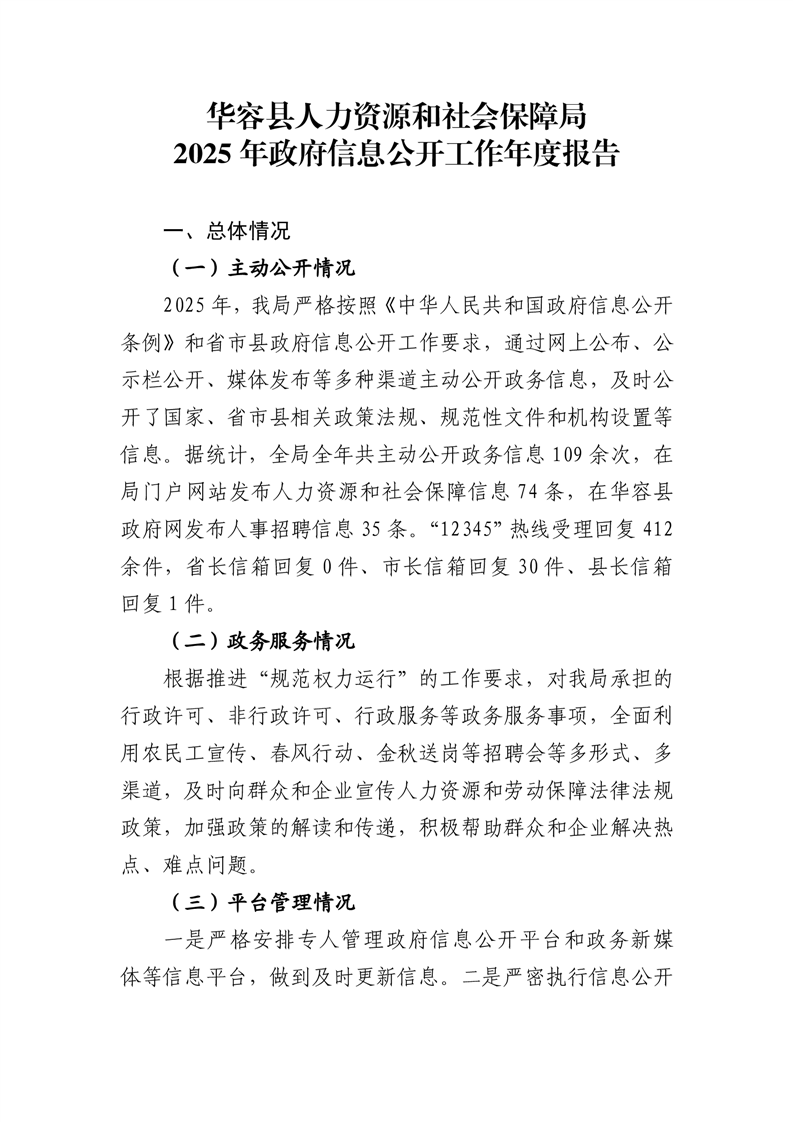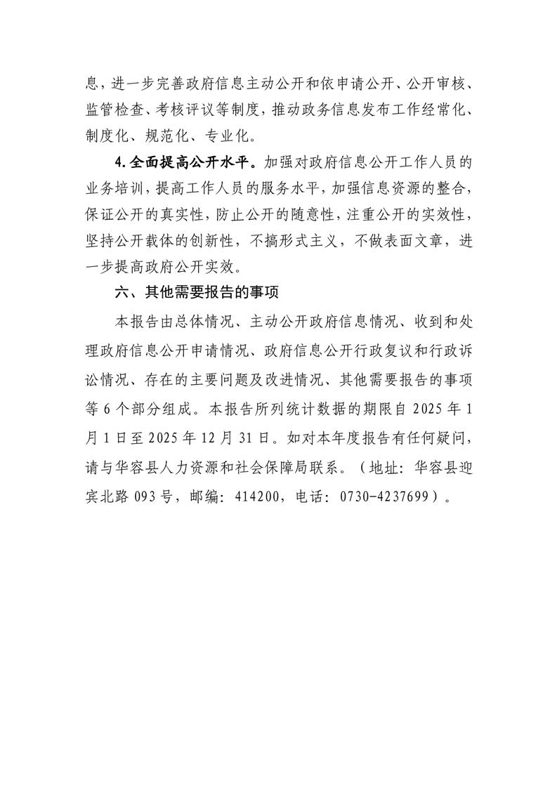 华容县人力资源和社会保障局2025年政府信息公开工作年度报告