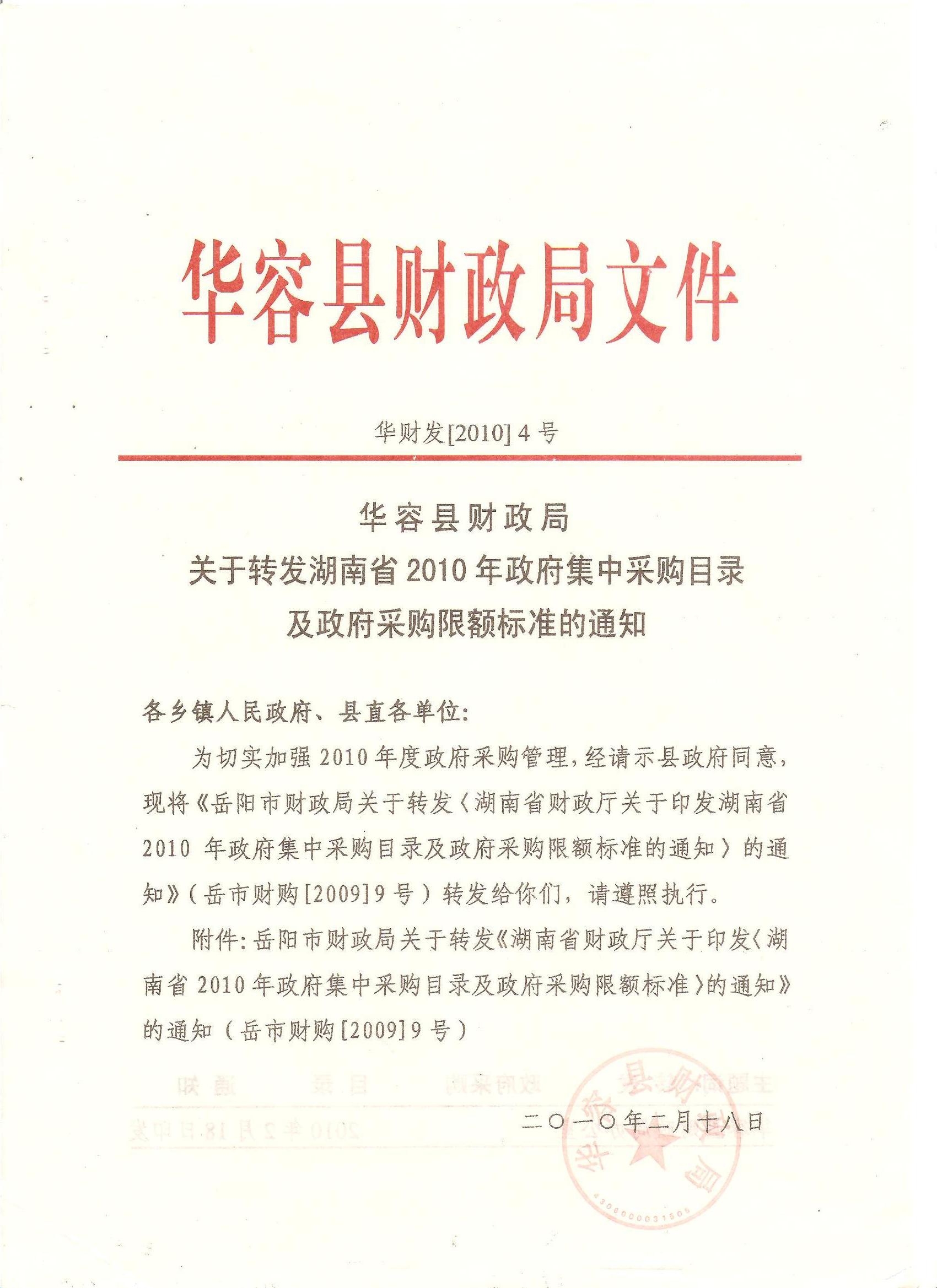 关于转发湖南省2010年政府集中采购目录及政府采购限额标准的通知