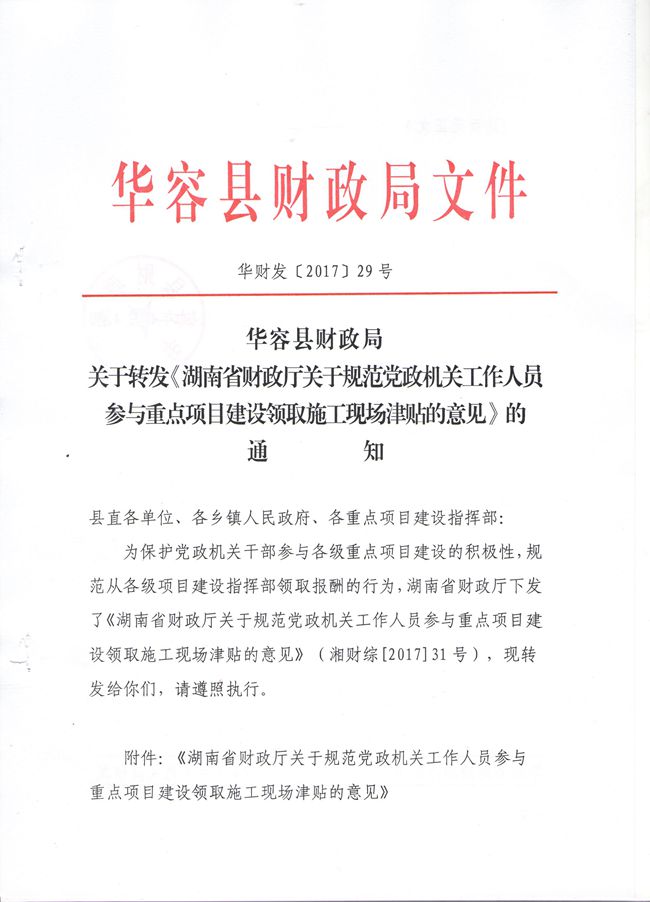 关于转发《湖南省财政厅关于规范党政机关工作人员参与重点项目建设领取施工现场津贴的意见》的通知