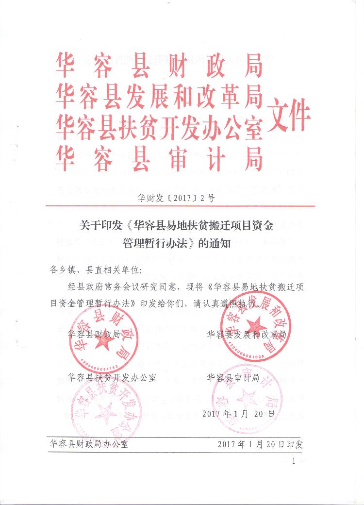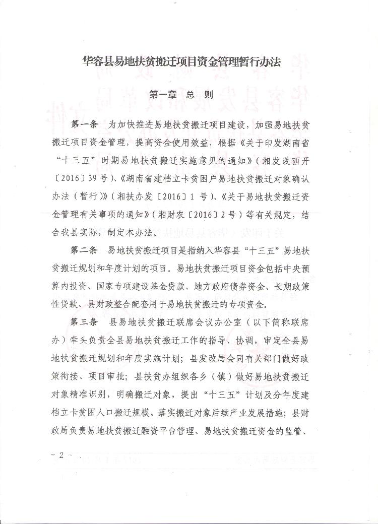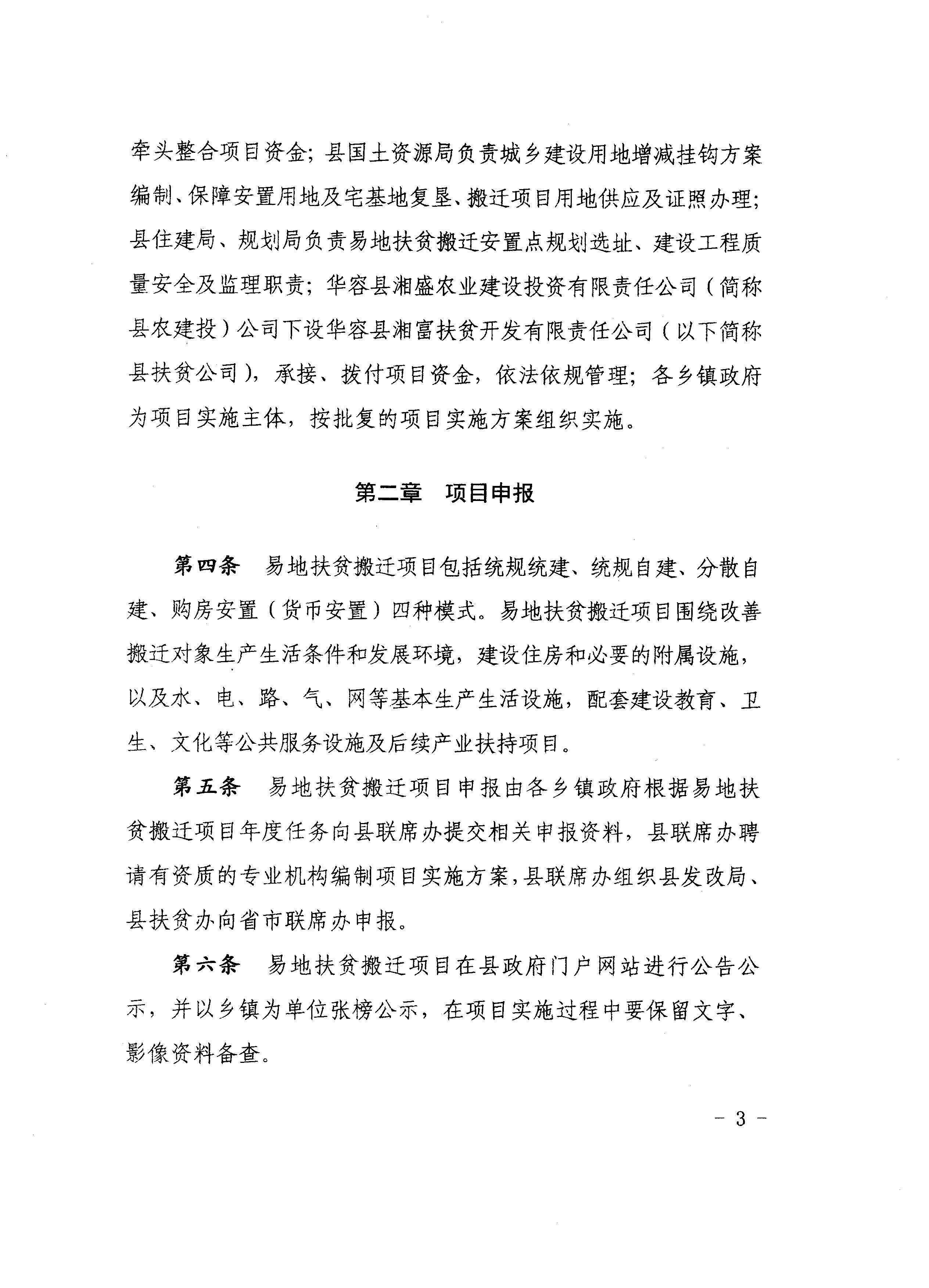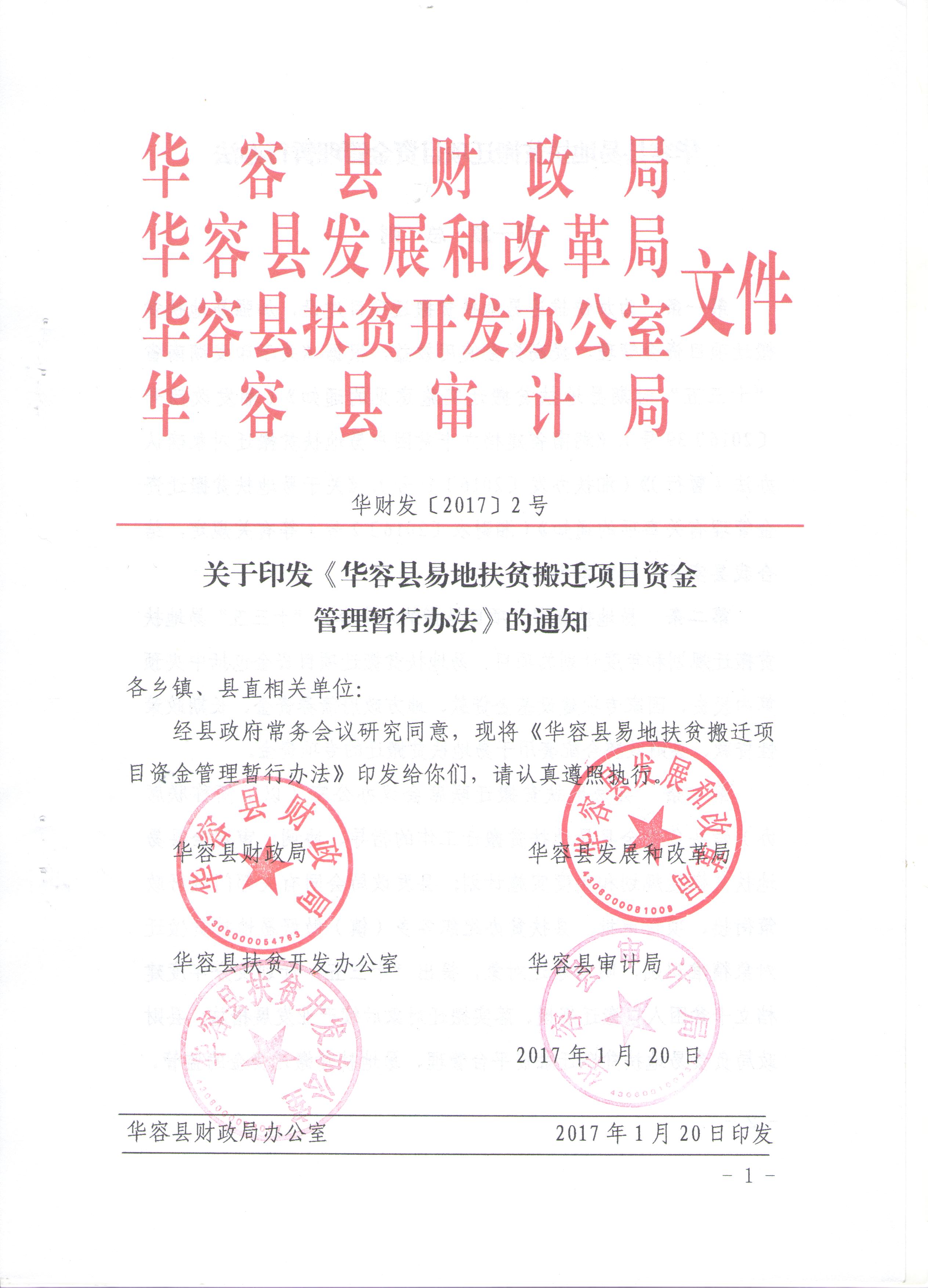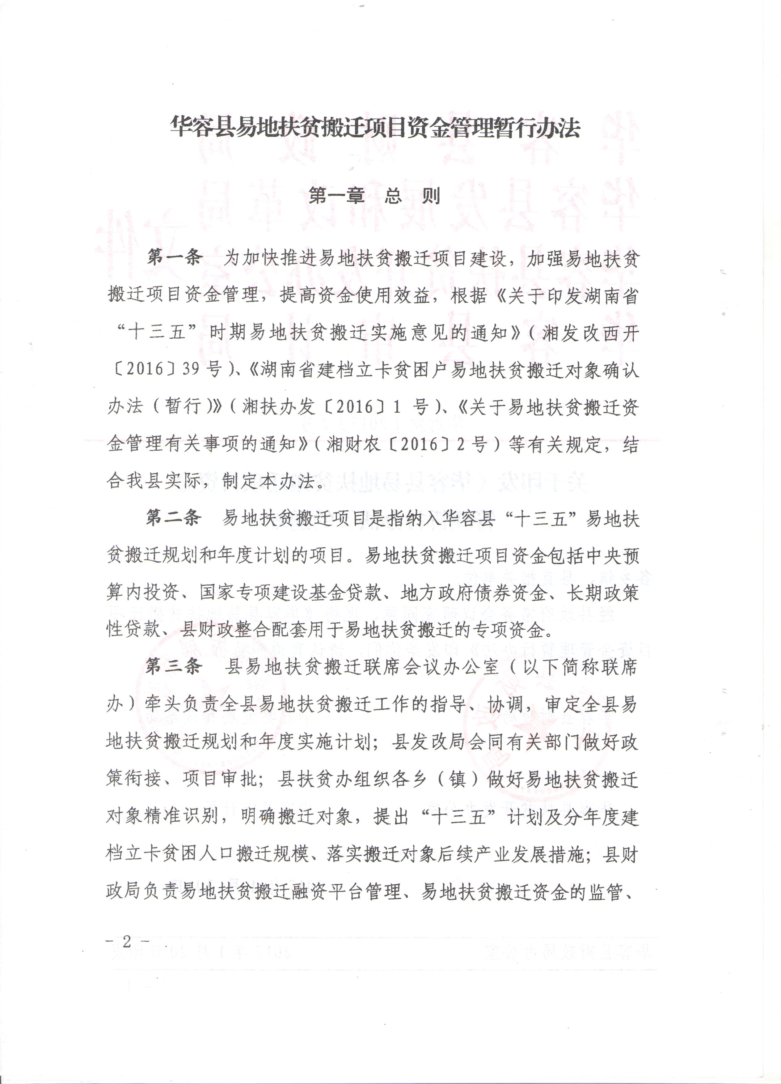 关于印发《华容县易地扶贫搬迁项目资金管理暂行办法》的通知
