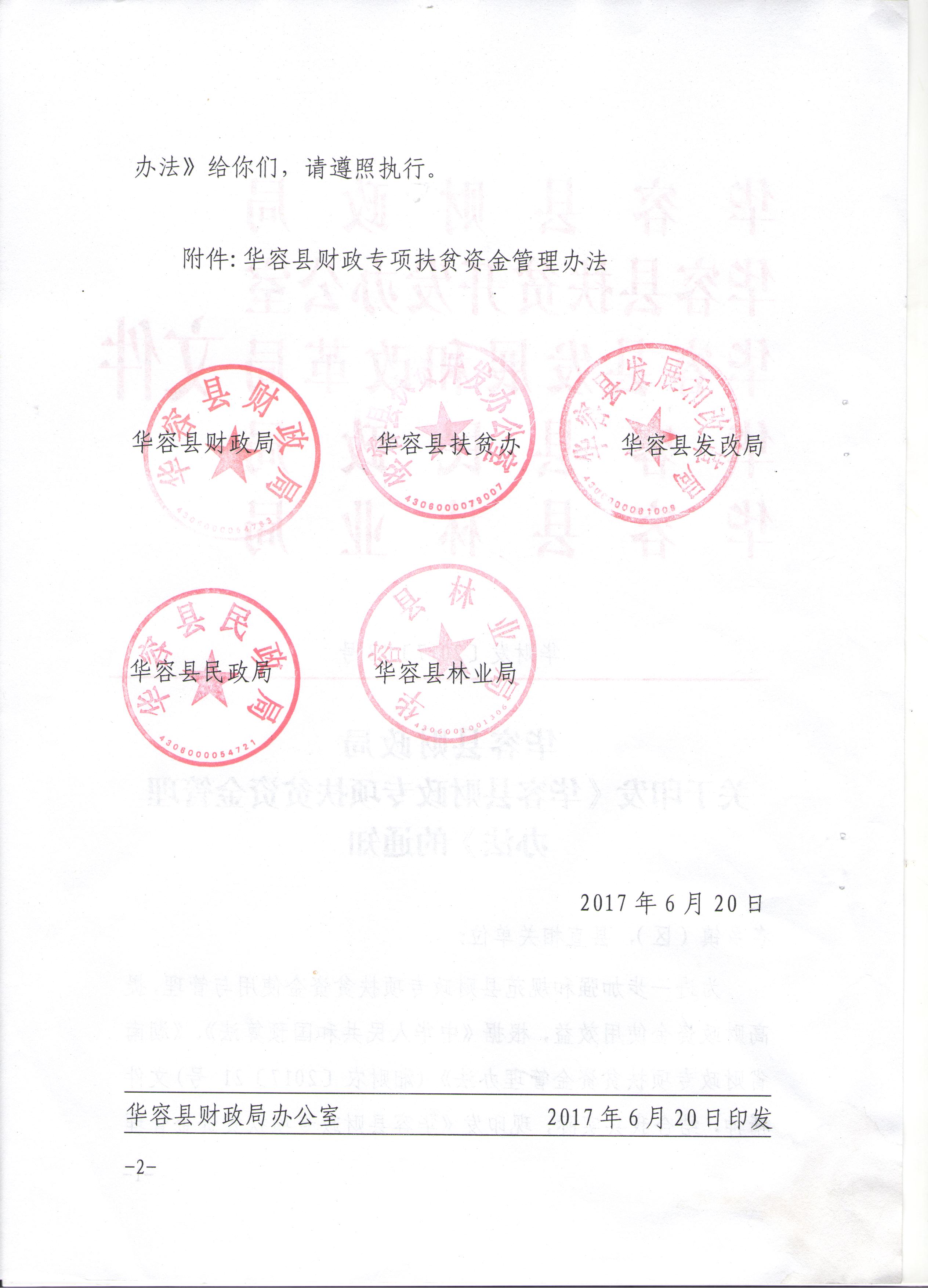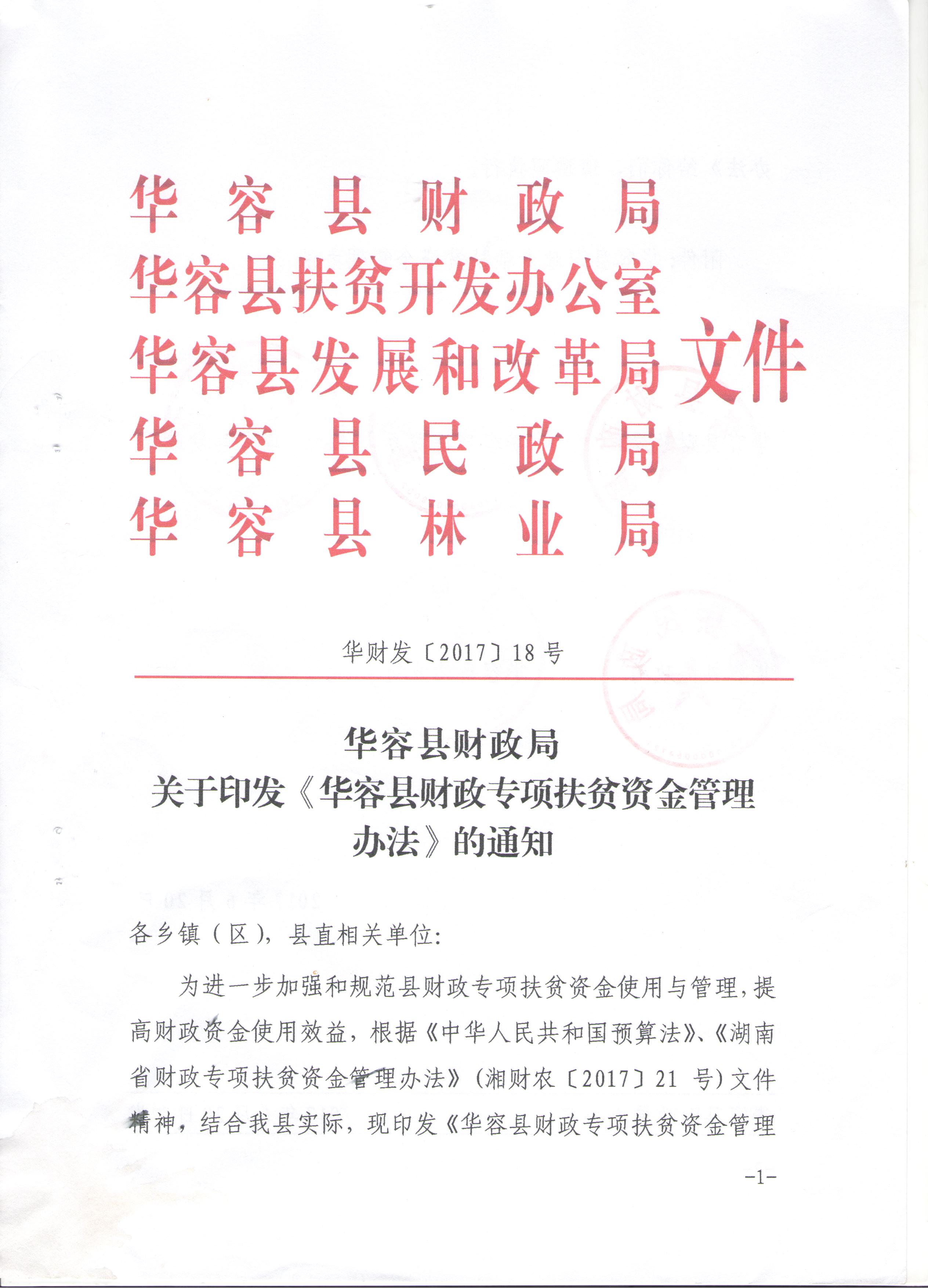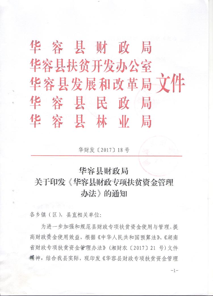 华容县财政局关于印发《华容县财政专项扶贫资金管理办法》的通知