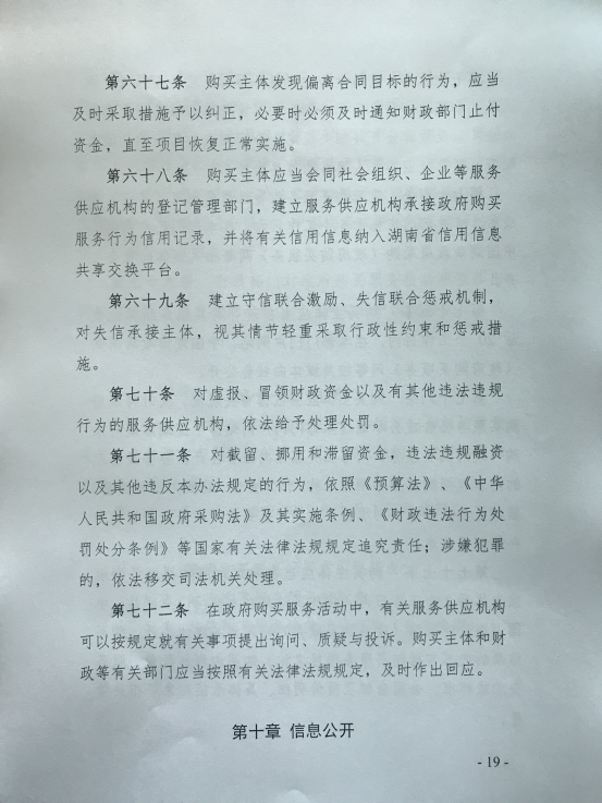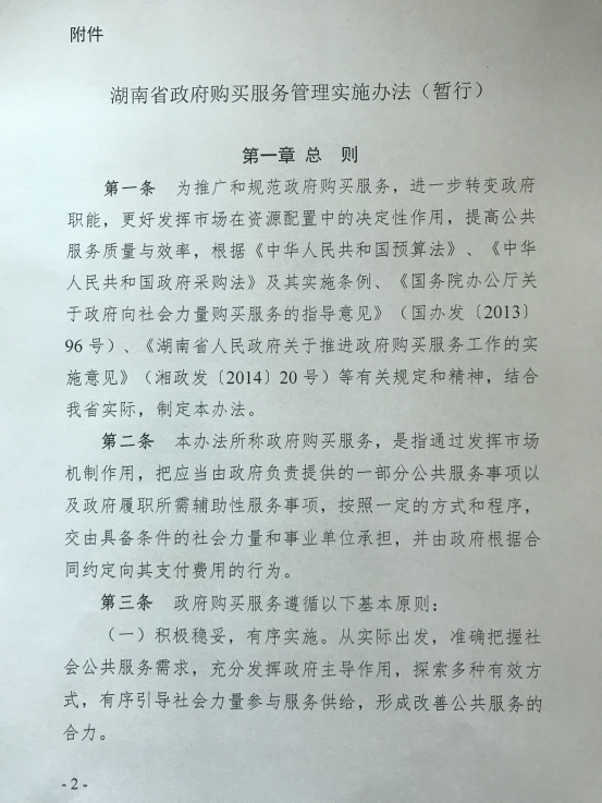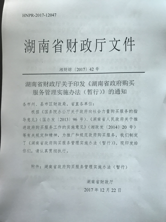 湖南省财政厅关于印发《湖南省政府购买服务管理实施办法(暂行)》的通知