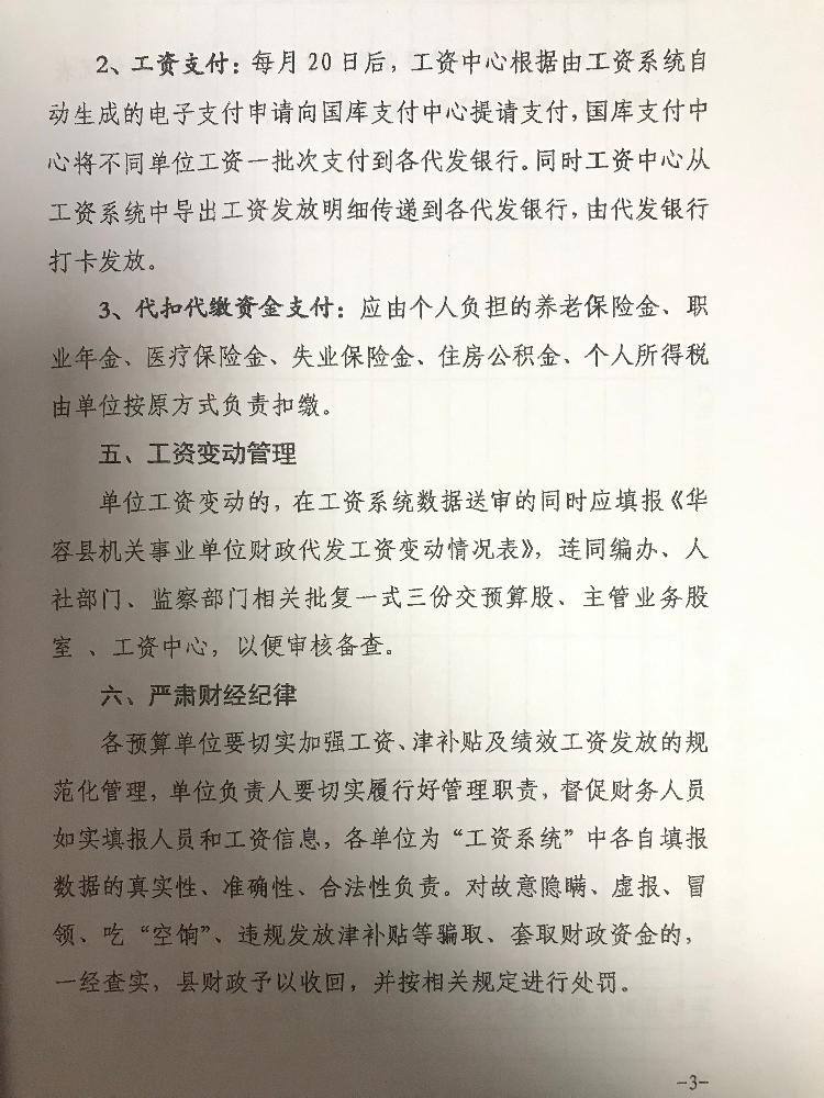 华容县财政局关于进一步完善财政代发工资管理的通知