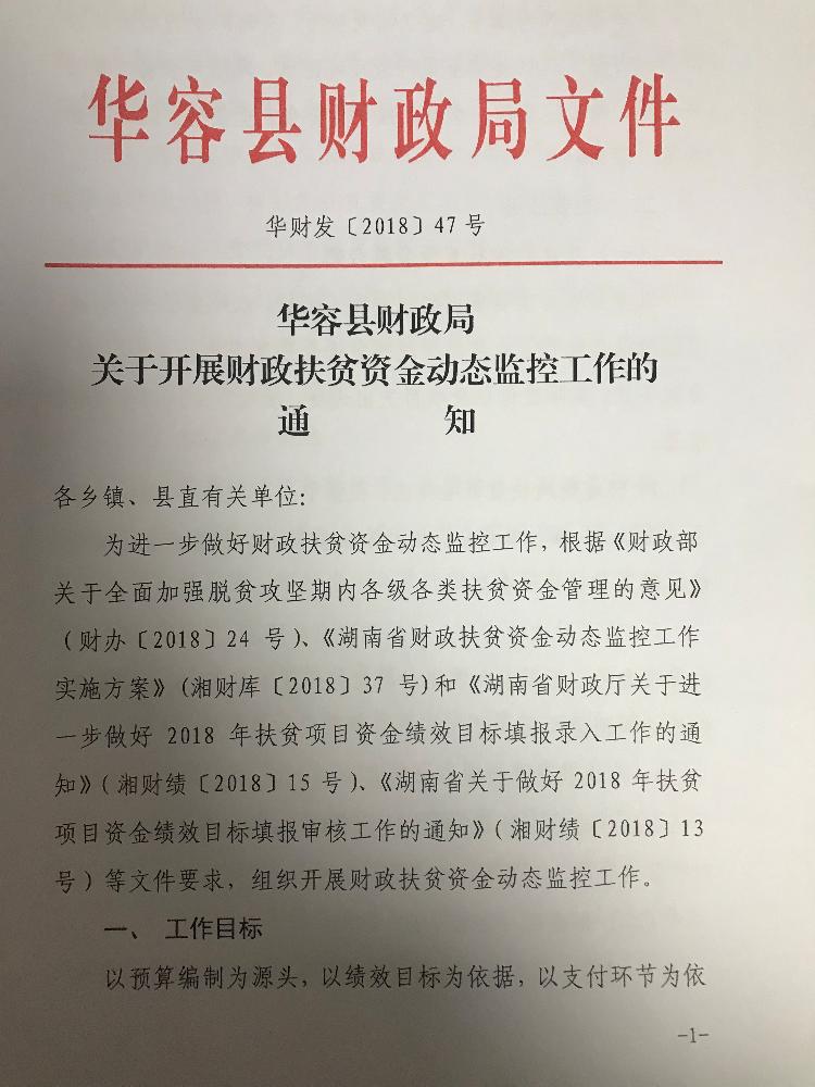 华容县财政局关于开展财政扶贫资金动态监控工作的通知