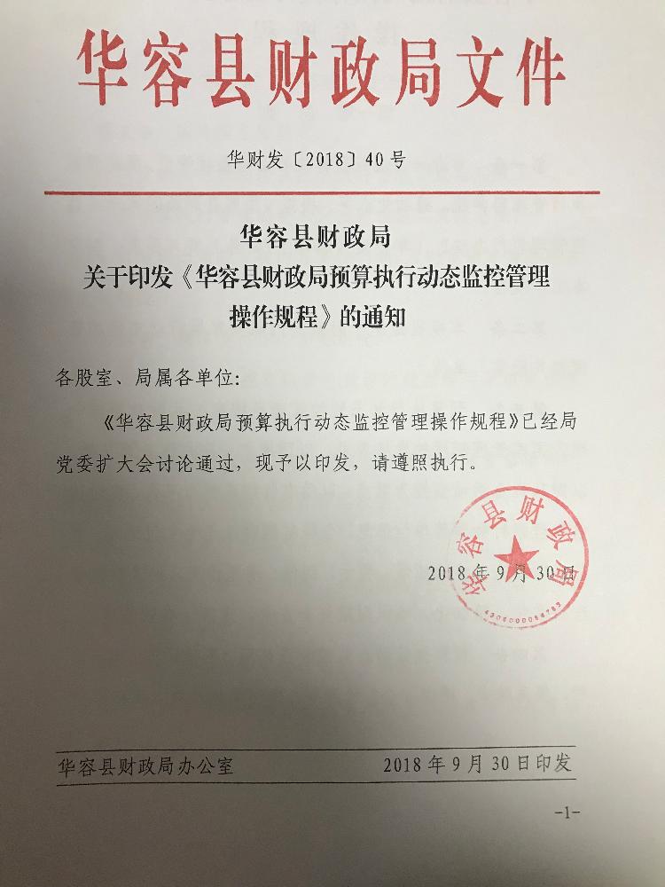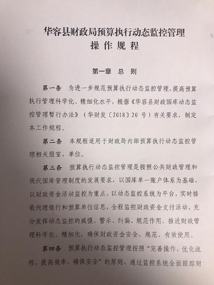 华容县财政局关于印发《华容县财政局预算执行动态监控管理操作规程》的通知