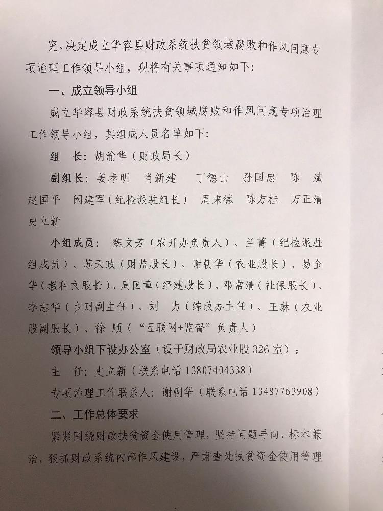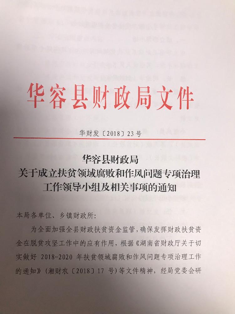 华容县财政局关于成立扶贫领域腐败和作风问题专项治理工作领导小组及相关事项的通知