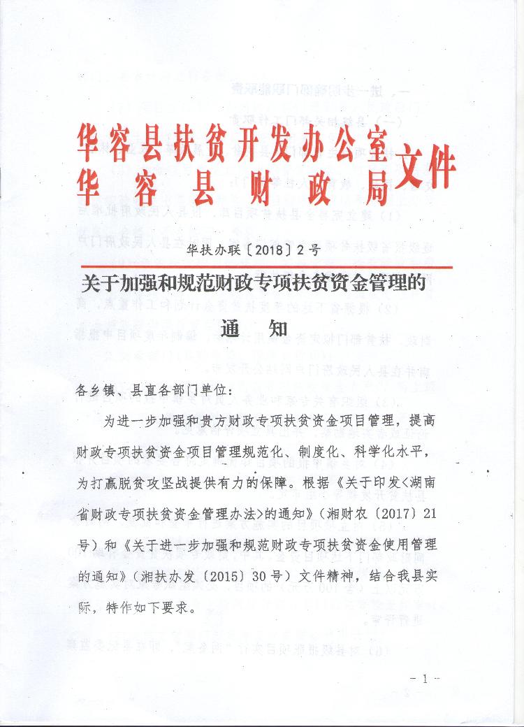 华容县扶贫办、华容县财政局关于加强和规范财政专项扶贫资金管理的通知(华扶办联[2018]2号)