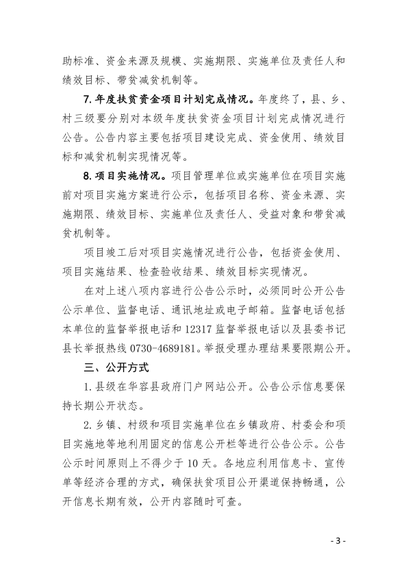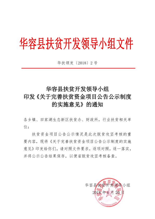 华容县扶贫办关于完善扶贫资金项目公告公示制度的实施意见(华扶领发[2018]2号)