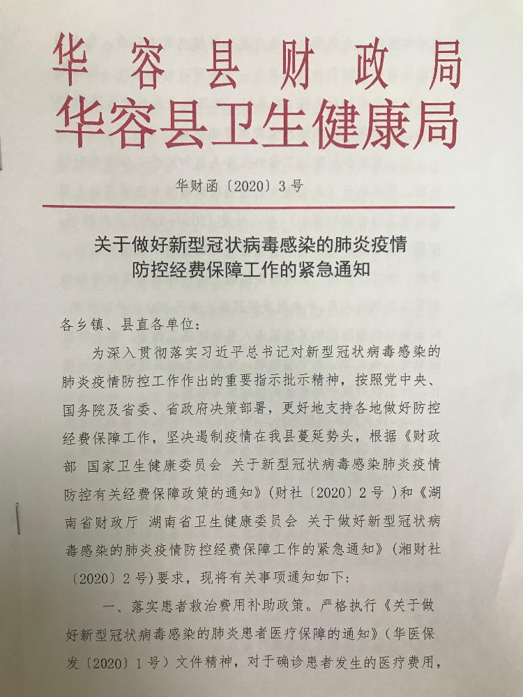 华容县财政局 华容县卫生健康局关于做好新型冠状病毒感染的肺炎疫情防控经费保障工作的紧急通知