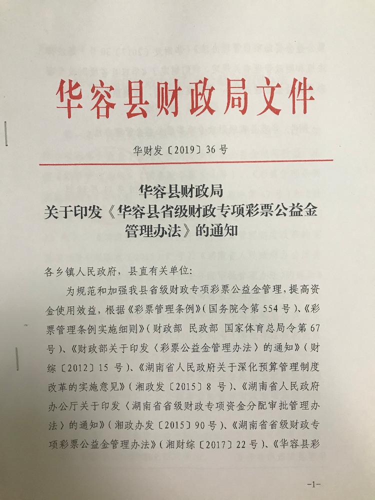 华容县财政局关于印发《华容县省级财政专项彩票公益金管理办法》的通知