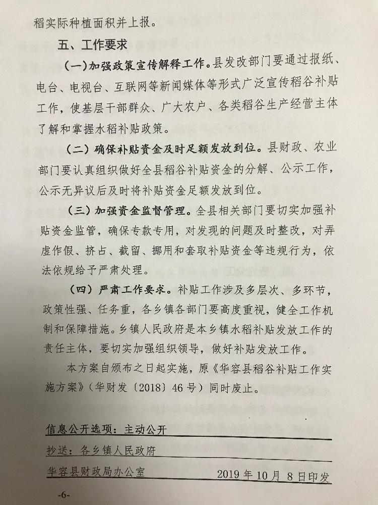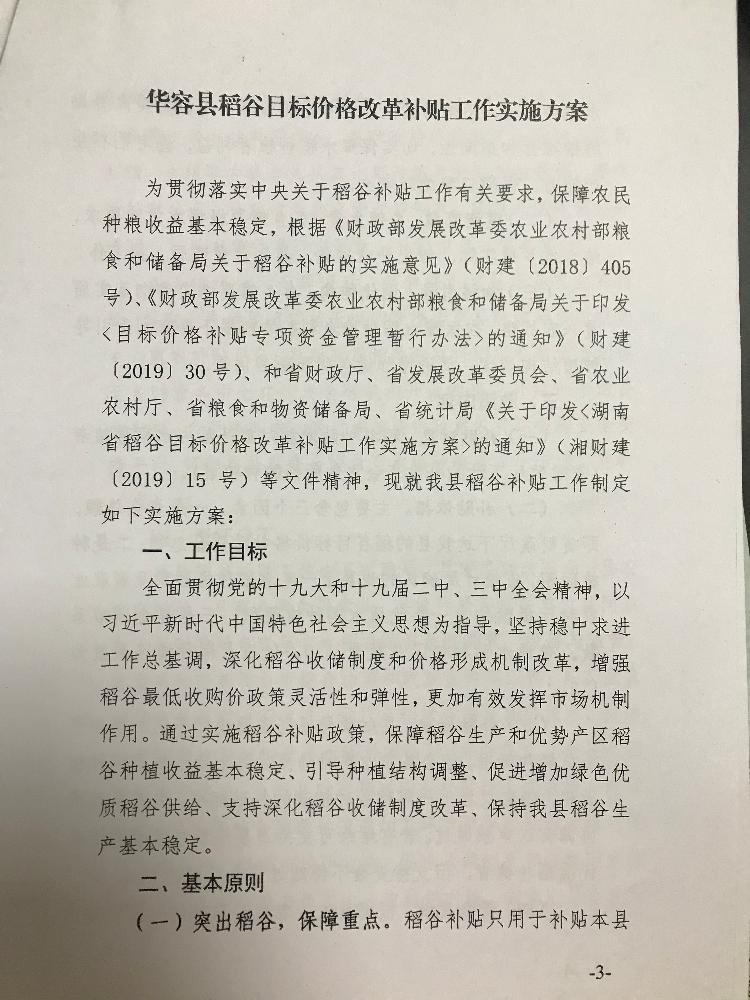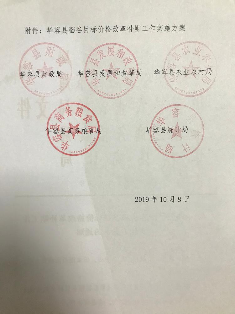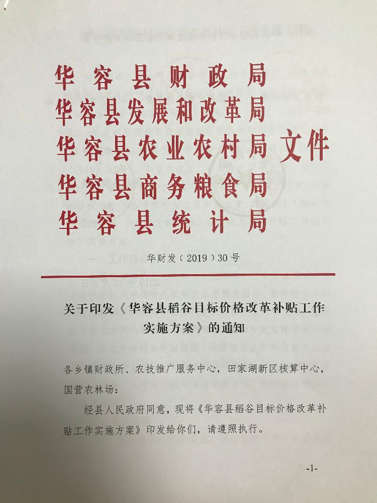 关于印发《华容县稻谷目标价格改革补贴工作实施方案》的通知