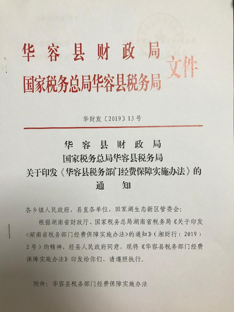 华容县财政局 国家税务总局华容县税务局关于印发《华容县税务部门经费保障实施办法》的通知