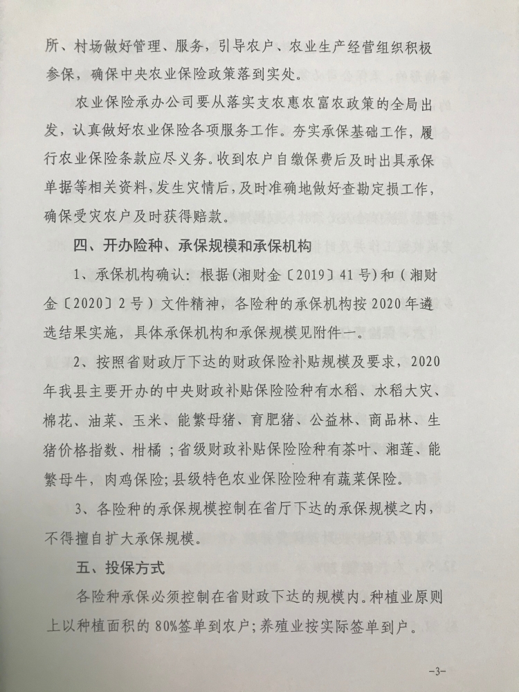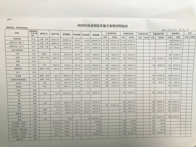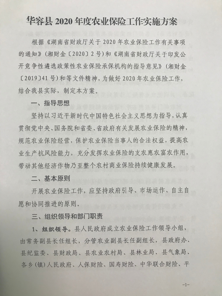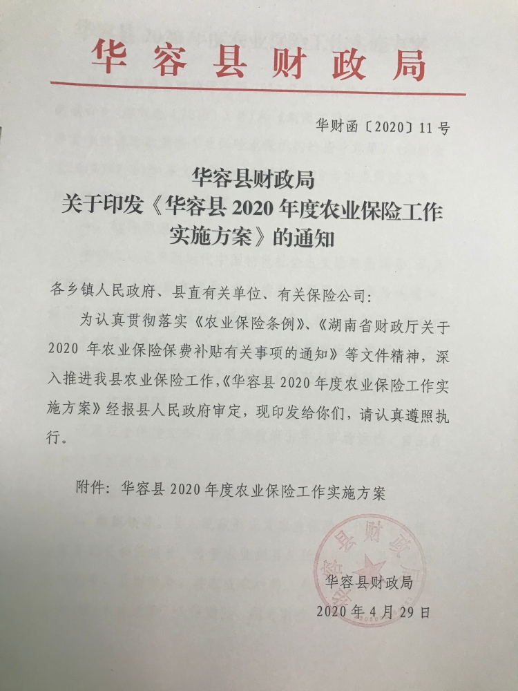 华容县财政局关于印发《华容县2020年度农业保险工作实施方案》的通知