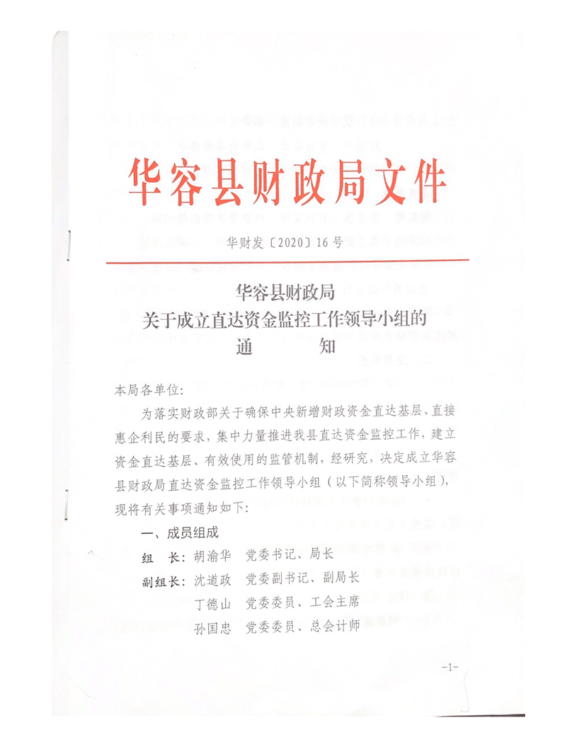 [财政资金直达基层]华容县财政局关于成立直达资金监控工作领导小组的通知