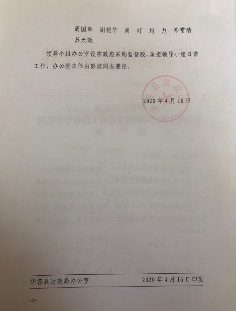 华容县财政局关于成立政府采购监督检查工作领导小组的通知