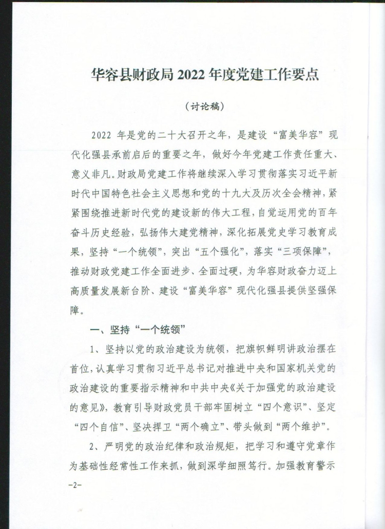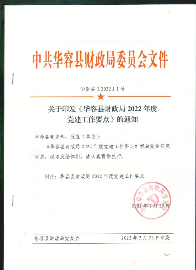 关于印发《华容县财政局2022年度党建工作要点》的通知